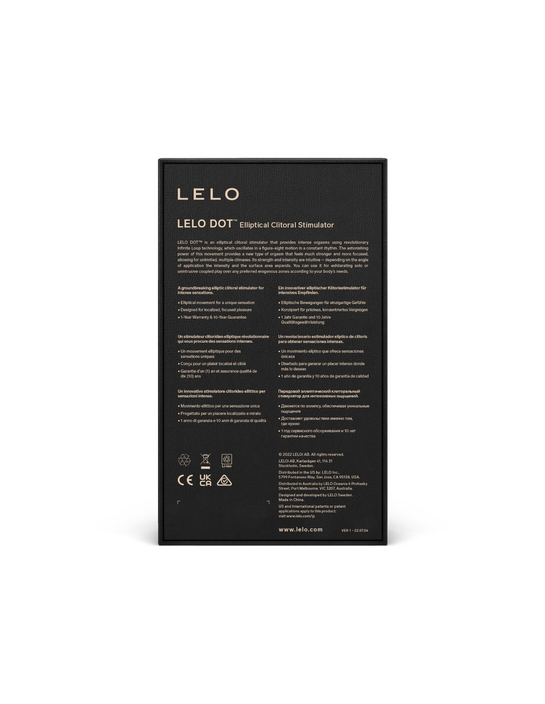 Developed by LELO for LELO DOT, Infinite Loop technology puts a new spin on everyday vibrations used by personal massagers. It uses elliptical oscillation to provide a new type of stimulation - a sensation unlike any other experience. Its strength and intensity are intuitive and based on your own pressure applied according to your body's needs. A figure-eight motion that moves at a steady pace with amazing power provides a new type of orgasm that feels much stronger and more focused on your pleasure points.