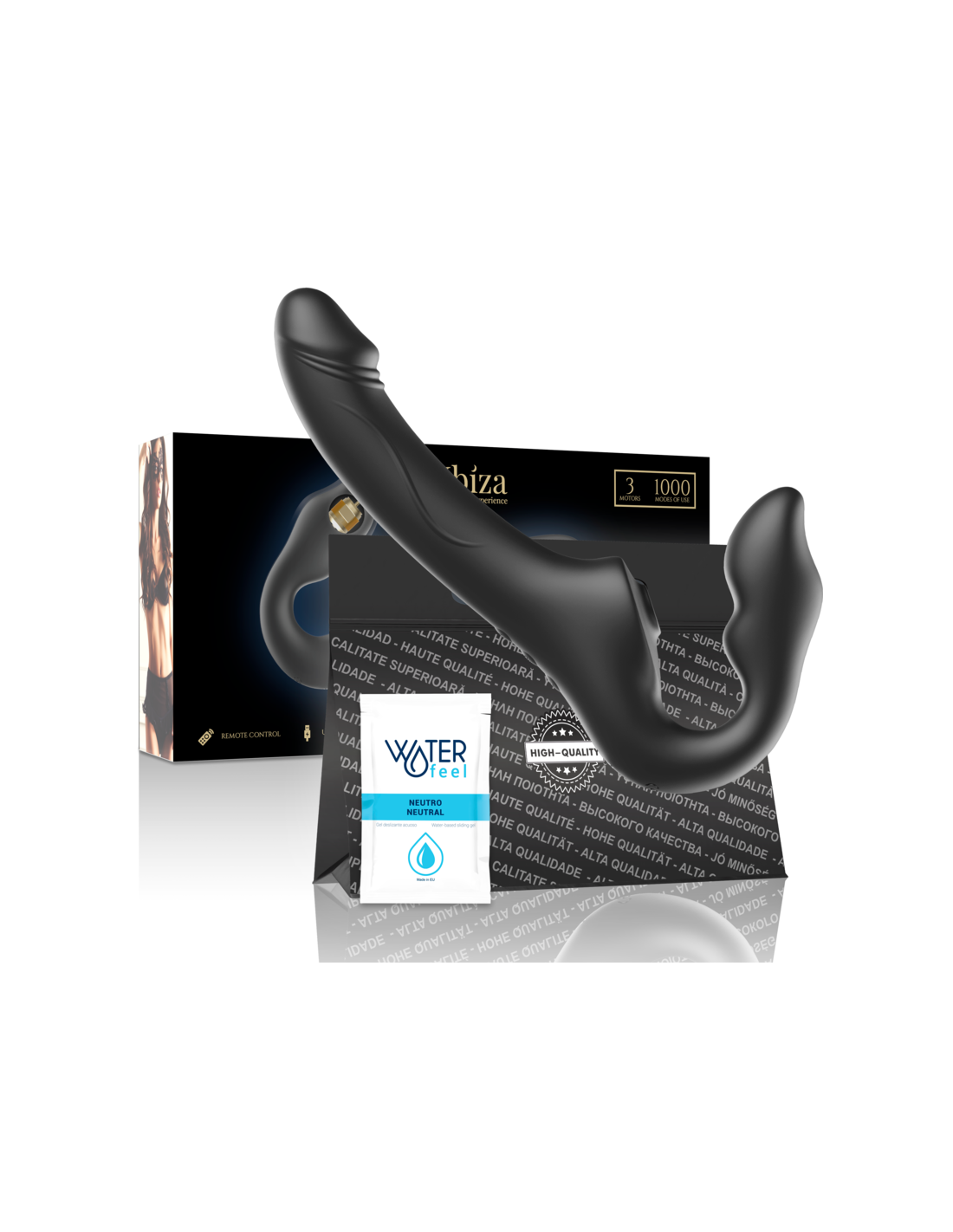 If we talk about comfort in transport and discretion, Ibiza begins by innovating, since we also consider that it is a very important part of the experience of buying an erotic toy. When buying a toy from Ibiza, you will receive a premium box with a black carrying bag inside, where you will find the toy, a charger and a single-dose Waterfeel Neutral lubricant sachet so that the customer's first experience is as pleasant as possible, and being able to take the toy discreetly wherever you want.