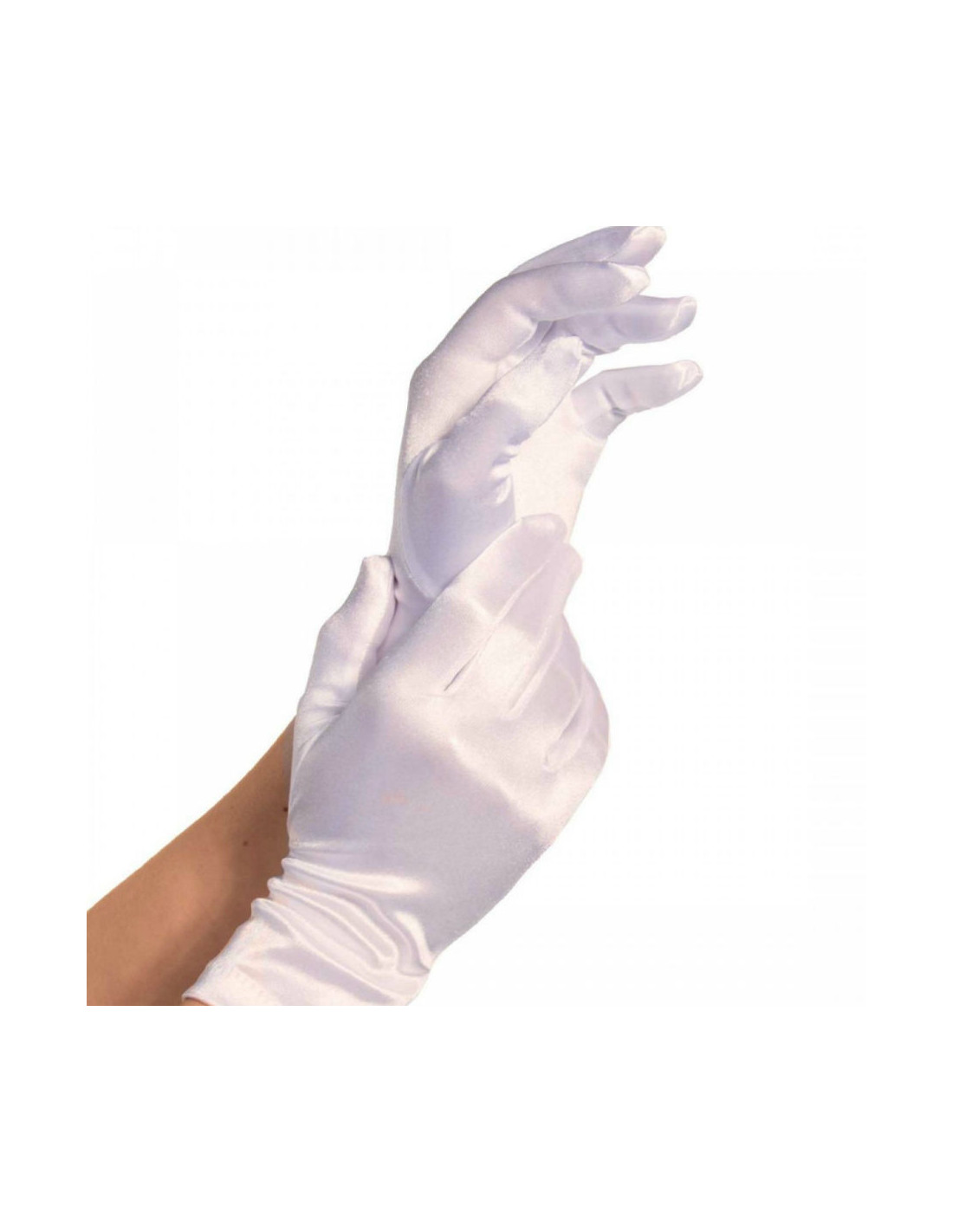 Short, elastic and adaptable gloves. White color. Bright satin effect, very elegant for party, ceremony, event or wedding ..