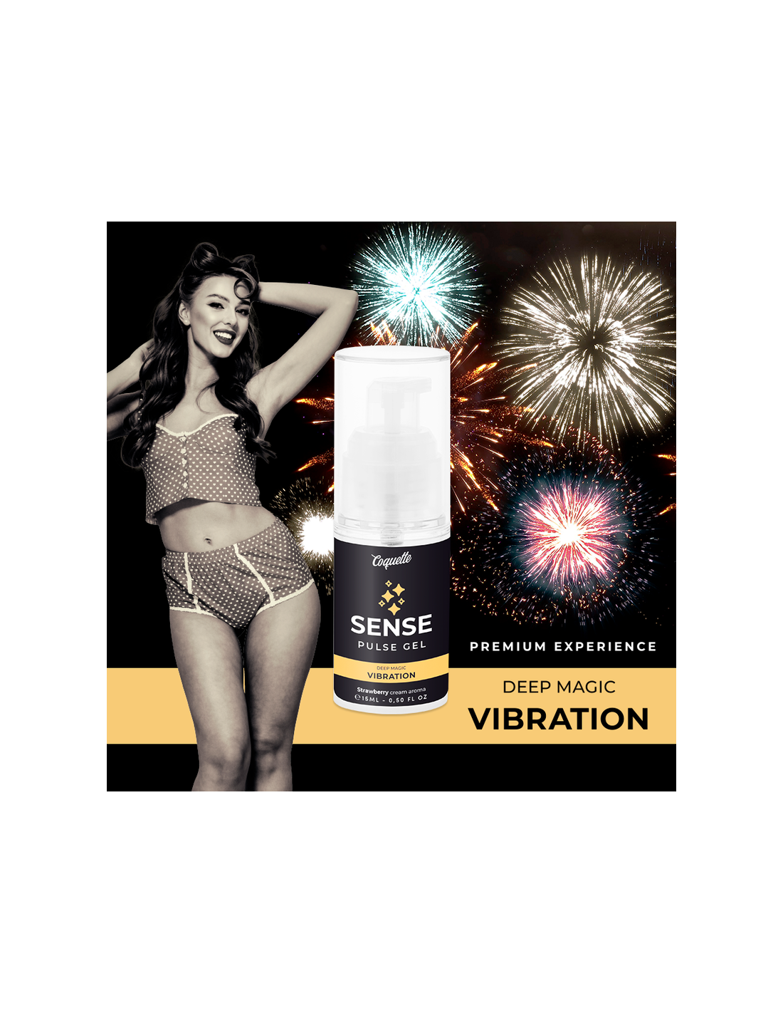 COQUETTE COSMETICSWe present the new COQUETTE CHIC DESIRE SENSE PULSE GEL products, with a vibration effect. It is applied to the skin like any other erotic massage gel or conventional lubricant. But the effects of this pleasure liquid are very different from those of any other product in this same category.