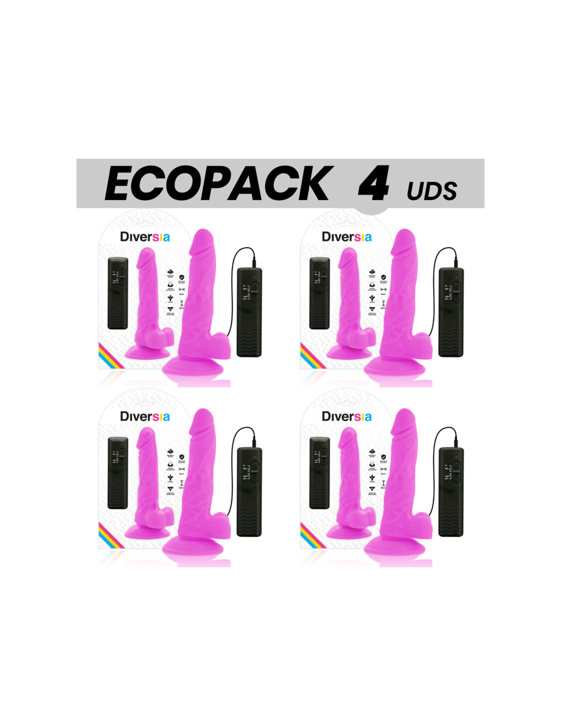 ECOPACK 6 UNITS - DIVERSIA FLEXIBLE VIBRATING DILDO PURPLE 18 CM -O- 4 CM