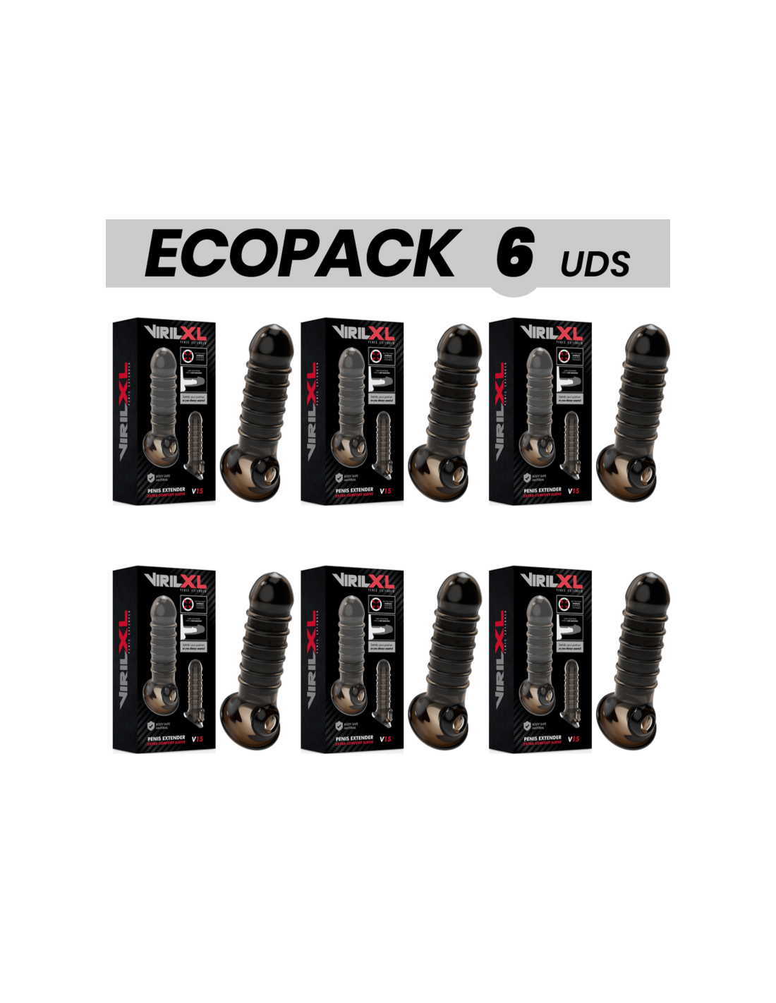 ECOPACK 6 UNITS - VIRILXL PENIS EXTENSION AND SHEATH V15 BLACK
