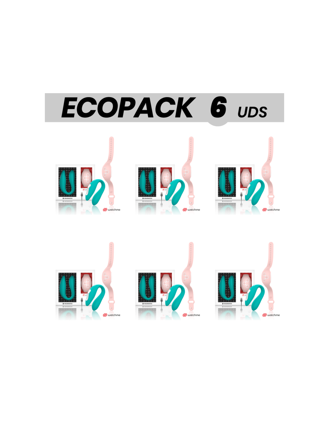 ECOPACK 6 UNITS - WEARWATCH DUAL TECHNOLOGY VIBRATOR WATCHME SEA WATER - PINK