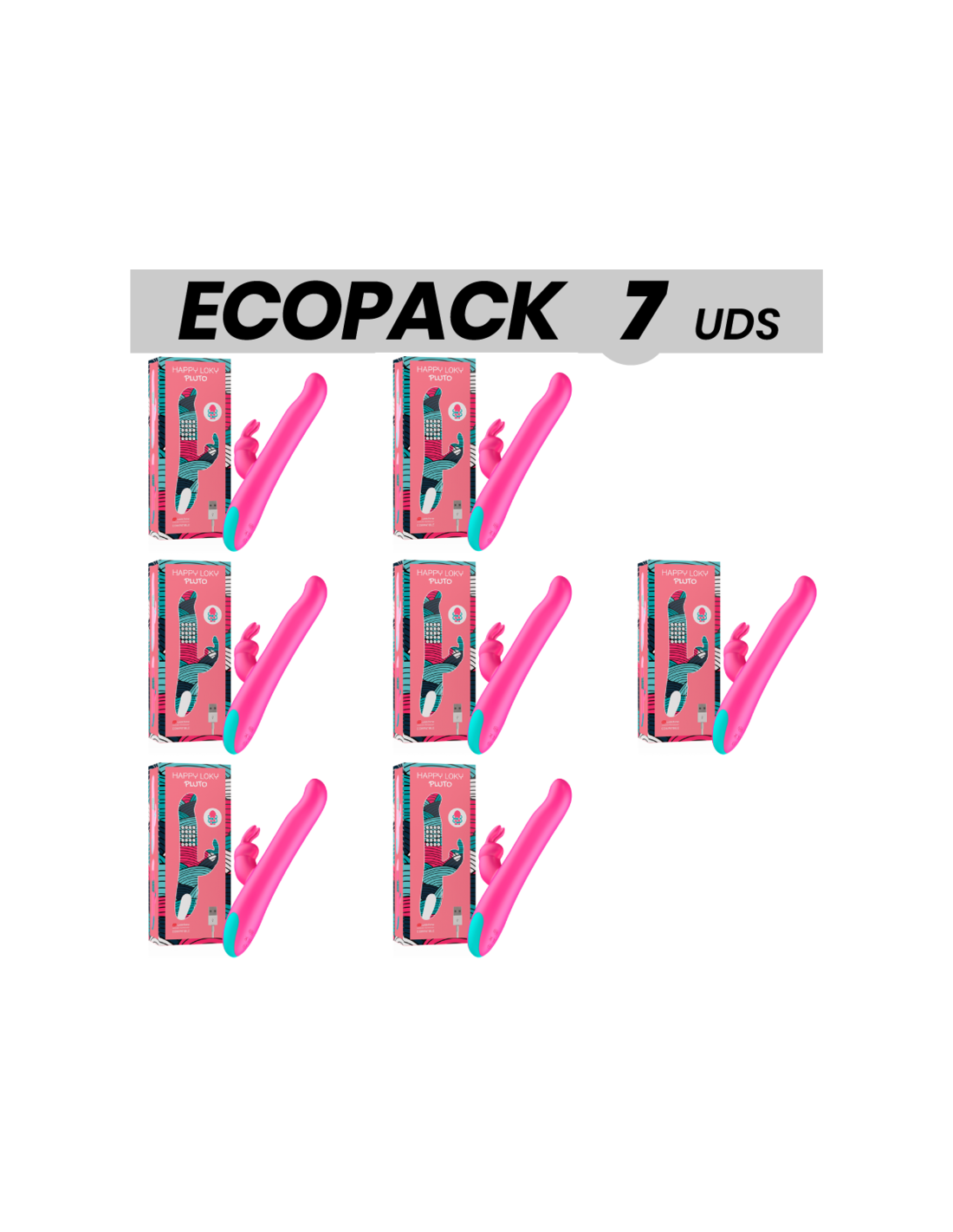 ECOPACK 7 UNITS - HAPPY LOKY PLUTO RABBIT VIBRATOR and ROTATOR COMPATIBLE WITH WATCHME WIRELESS TECHNOLOGY