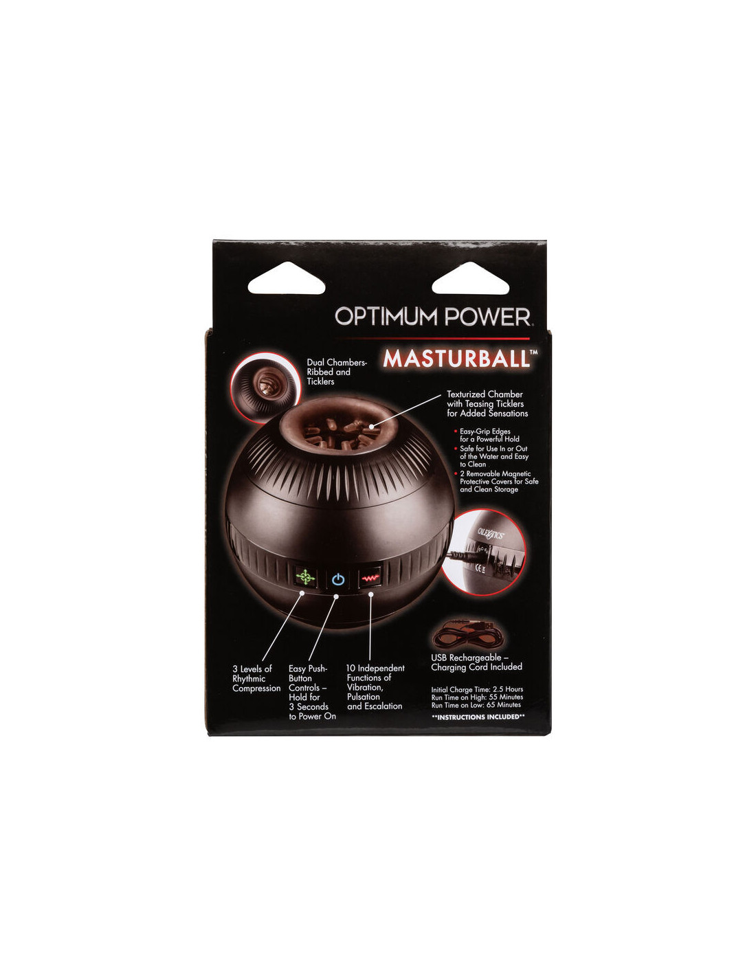 The Optimum Power Masturball is a fully autonomous vibration power kicker with 10 vibration functions, 3 sensational compression functions, and pressure sensitive pads for a fully customizable caressing experience.
