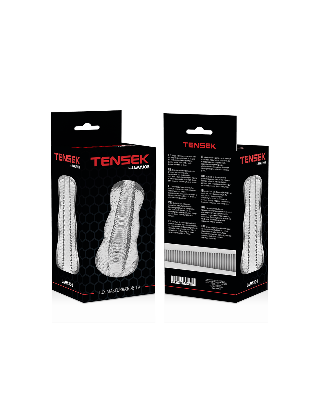 Enjoy a completely new experience. The innovative TENSEK model joins the JAMYJOB line of masturbators and features a unique completely transparent design that leaves nothing to the imagination.