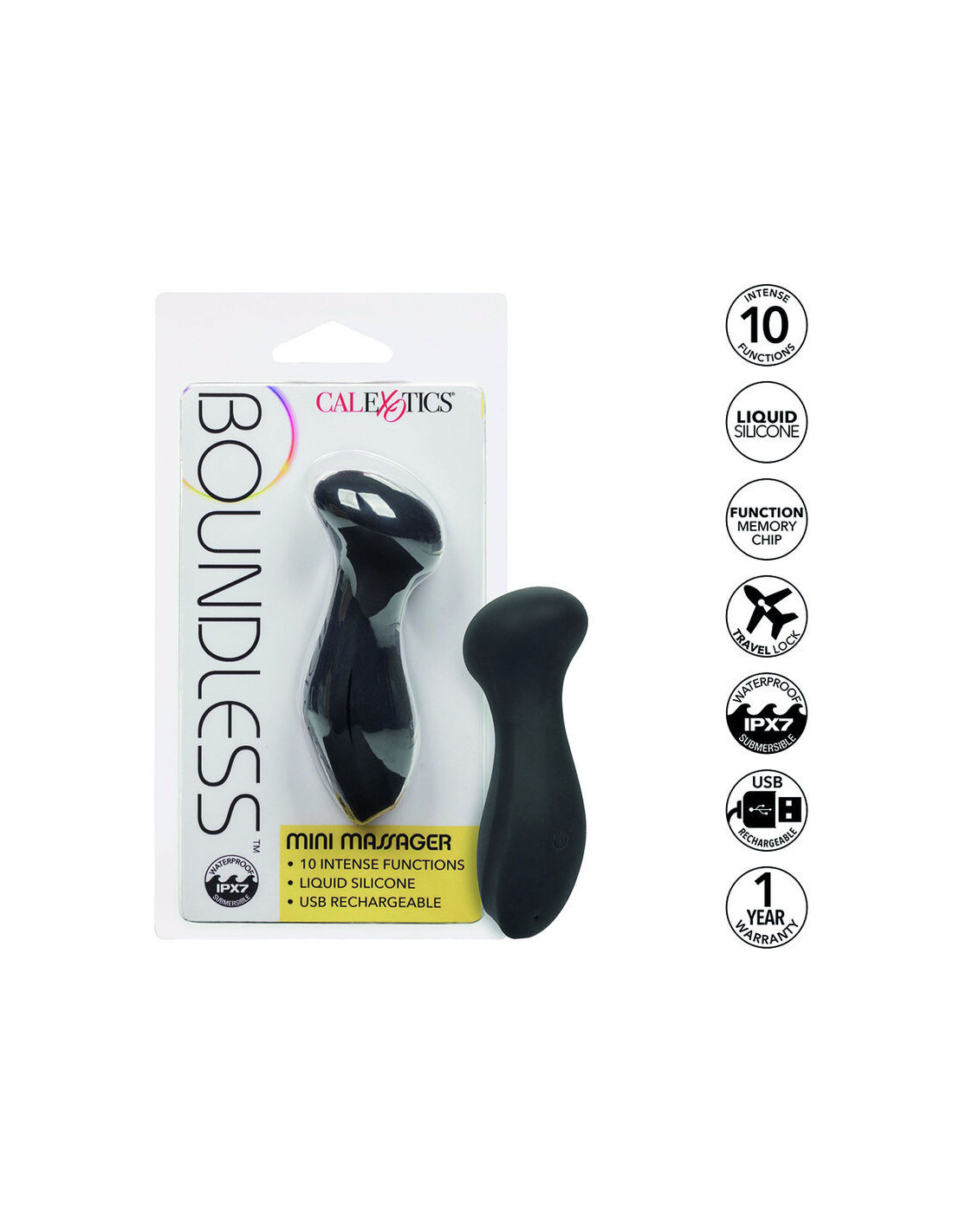 Experience supreme pleasure with the Boundless Mini Massager, which features a rounded, full-contact shape. With 10 intense functions, this compact toy offers incomparable sensations. Made from liquid silicone, it provides a softer, smoother texture, is highly durable and completely waterproof up to IPX7 standards for indulgent experiences in the bath or shower. The next-generation memory chip remembers your last function for easy resumption, and the security travel lock ensures peace of mind during transport. Discover pleasure and luxury with the powerful functions of our mini massager, elevating your intimate experiences to new heights of bliss and satisfaction.