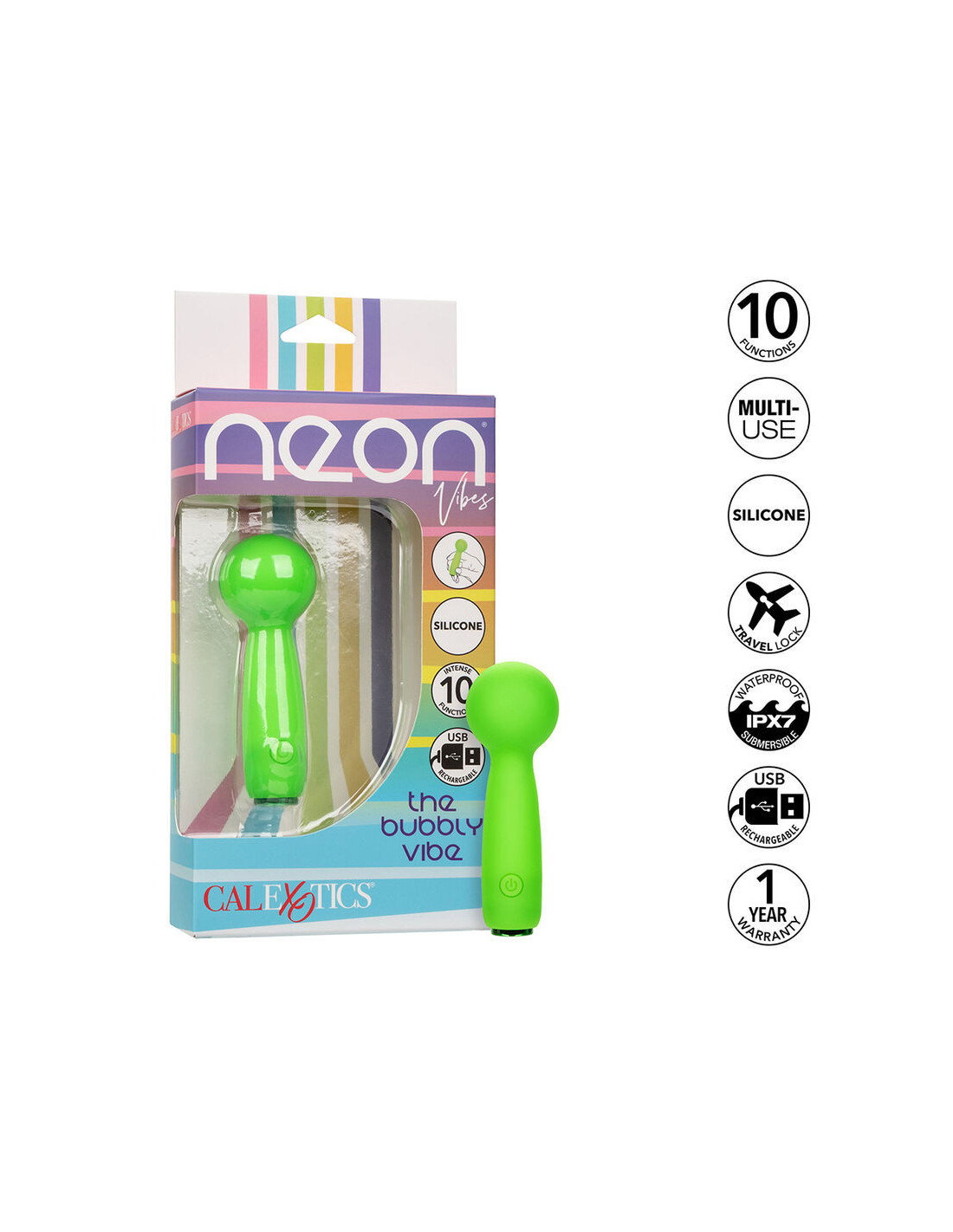 CALEXOTICS - NEON VIBES THE BUBBLY VIBE MINI MASSAGER 10 VIBRATIONS GREEN