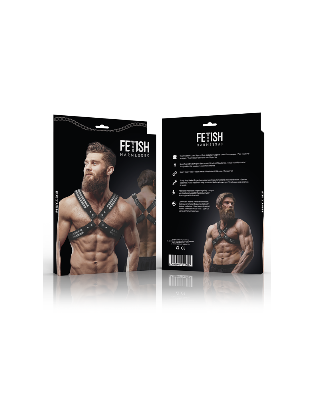 FETISH SUBMISSIVE ATTITUDE - MENS CROSSED CHEST ECO-LEATHER HARNESS WITH RIVETS