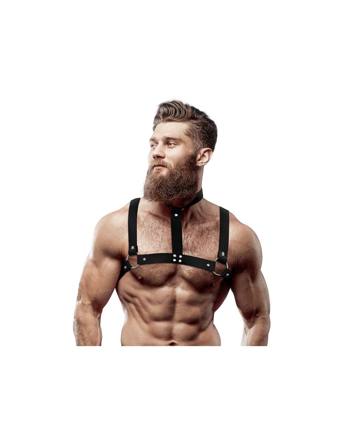 FETISH SUBMISSIVE ATTITUDEUnleash your power and dominate the dance floor with our front chest harness! This front harness with a sexy structure is designed to enhance the male figure and enhance your sexual image. Thanks to its adaptable material, it is easy to put on and has a flexible size that fits perfectly to your body.