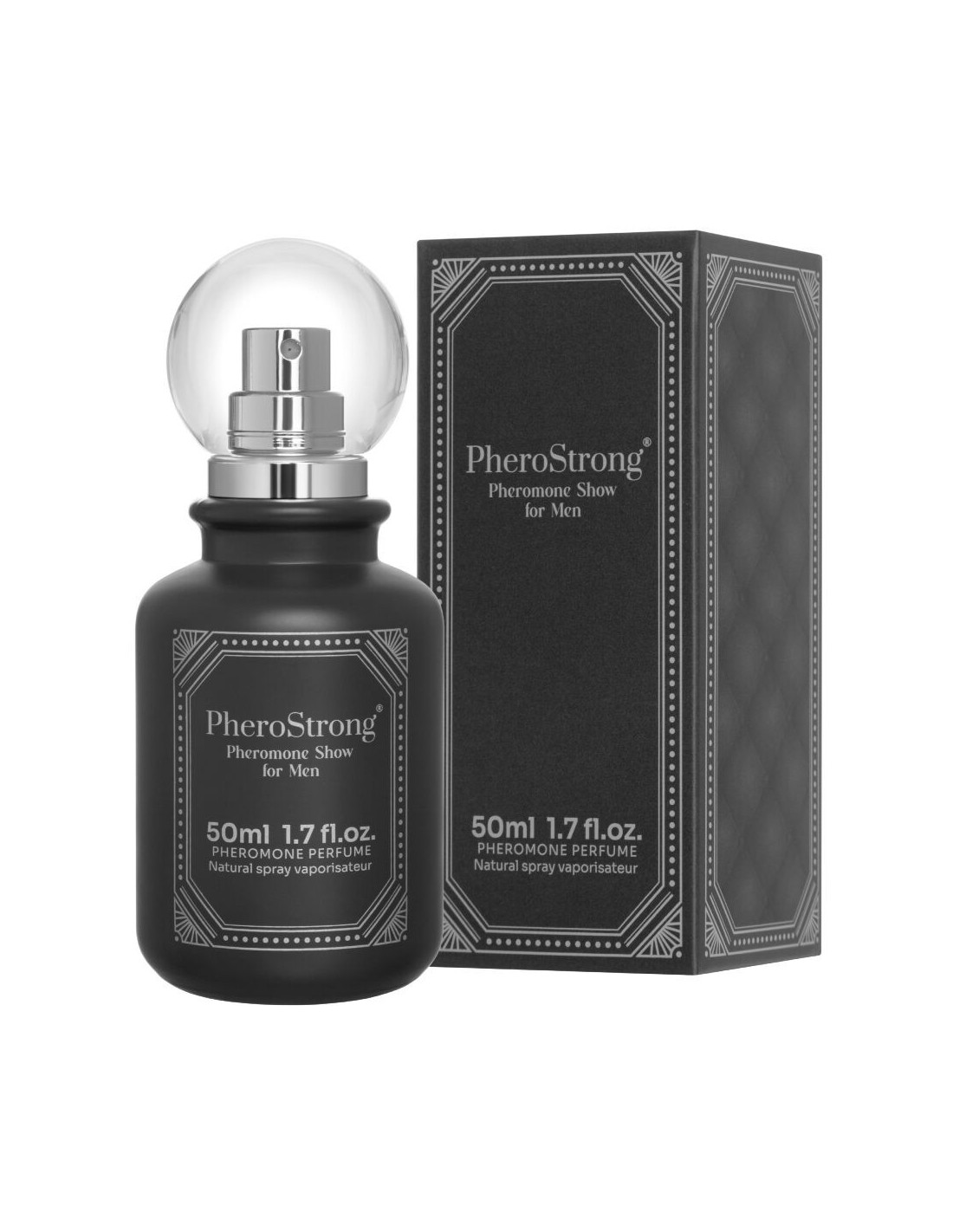 PheroStrong Show for Men blends elegance and strength. It begins with a cool, refreshing lavender note – timeless, yet updated with a modern edge. The heart features rich, sensual tonka bean, while the base settles into powerful, resinous benzoin. This aromatic-woody composition is intensified with PheroStrong® pheromones, creating a masculine aura that captures attention and lingers in memory.