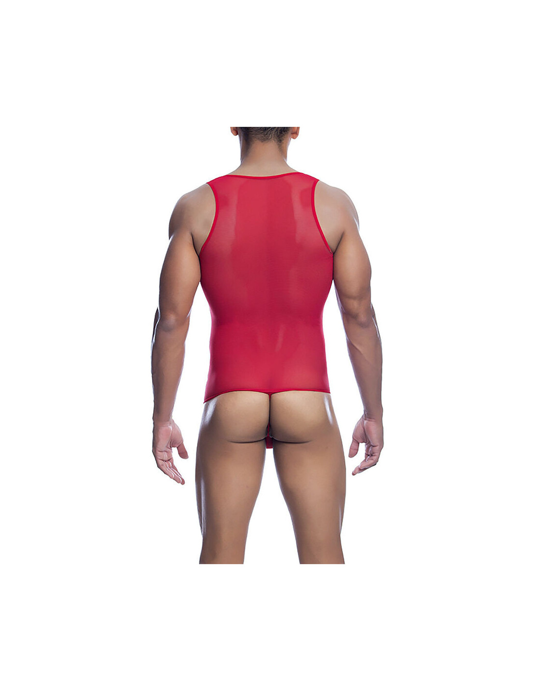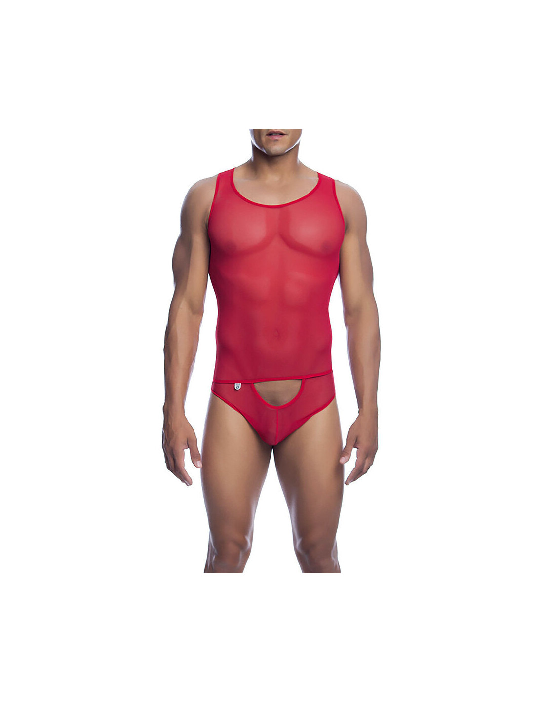 MOB Sexy Mesh all-over body and back thong. Front opening for easy access. Tulle Netting: Nylon 95% Spandex 5%.