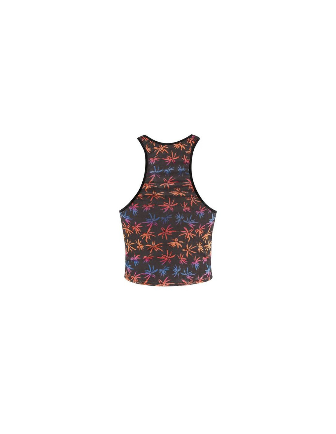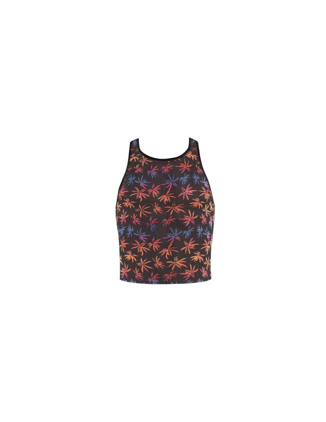 Soft black tulle with colorful print, holiday palms