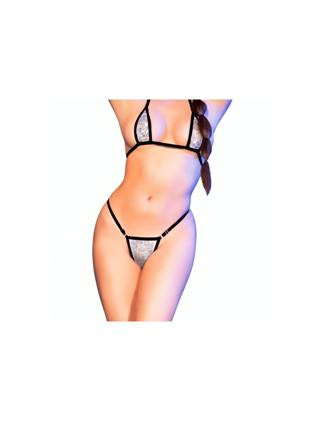 - CR-4660 Black/Silver Bra/Mini Bikini Set with Shiny Crystals