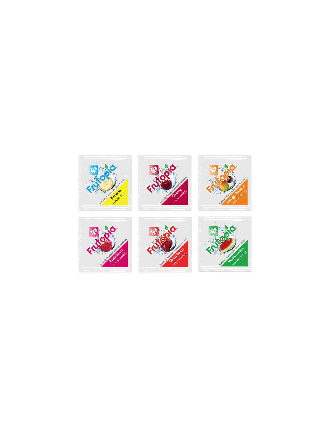 Our Frutopia ® line comes available in our sexy 3.4 oz. locking pump bottle for ease of application. Whether you’re looking for a citrusy blast or a refreshing mouthful, you’ll find that and more with our six delicious flavors: Raspberry, Mango Passion, Strawberry, Banana, Watermelon, and Cherry. Frutopia ®’s colorful assortment will have you doing more than just licking your lips. Frutopia ®, no flavored lube will ever be the same.
