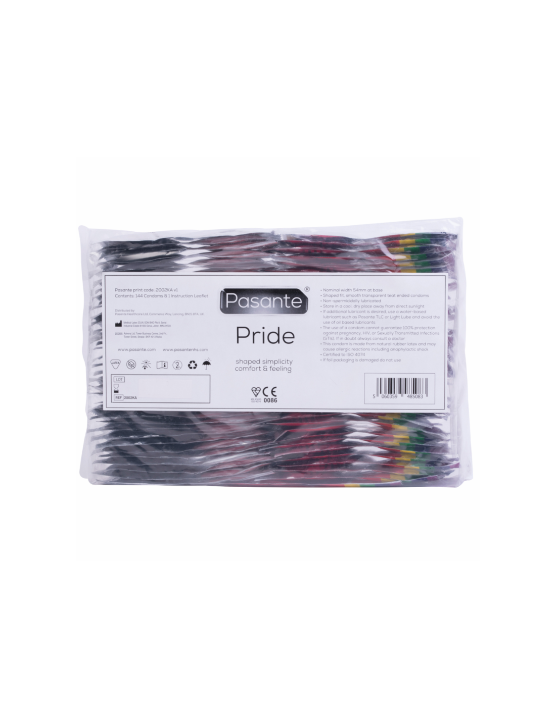 Pasante Pride condoms have a slight tapered shape for a natural feel. Soft, natural in color.