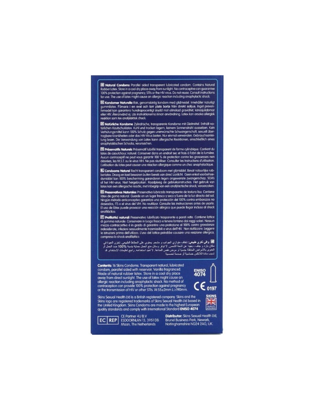 The Skins Natural 16-Pack is designed to deliver premium quality and value, offering a ready-to-use format with up to 33% more condoms per pack than the market leader. Ideal for retailers looking for a reliable, high-performance essential product that combines discretion, comfort, and quality. Made from high-quality natural latex, Skins Natural condoms are transparent, strong, and ultra-thin, offering a skin-like feel. Lightly infused with vanilla, they eliminate the typical latex odor, improving user comfort and confidence.