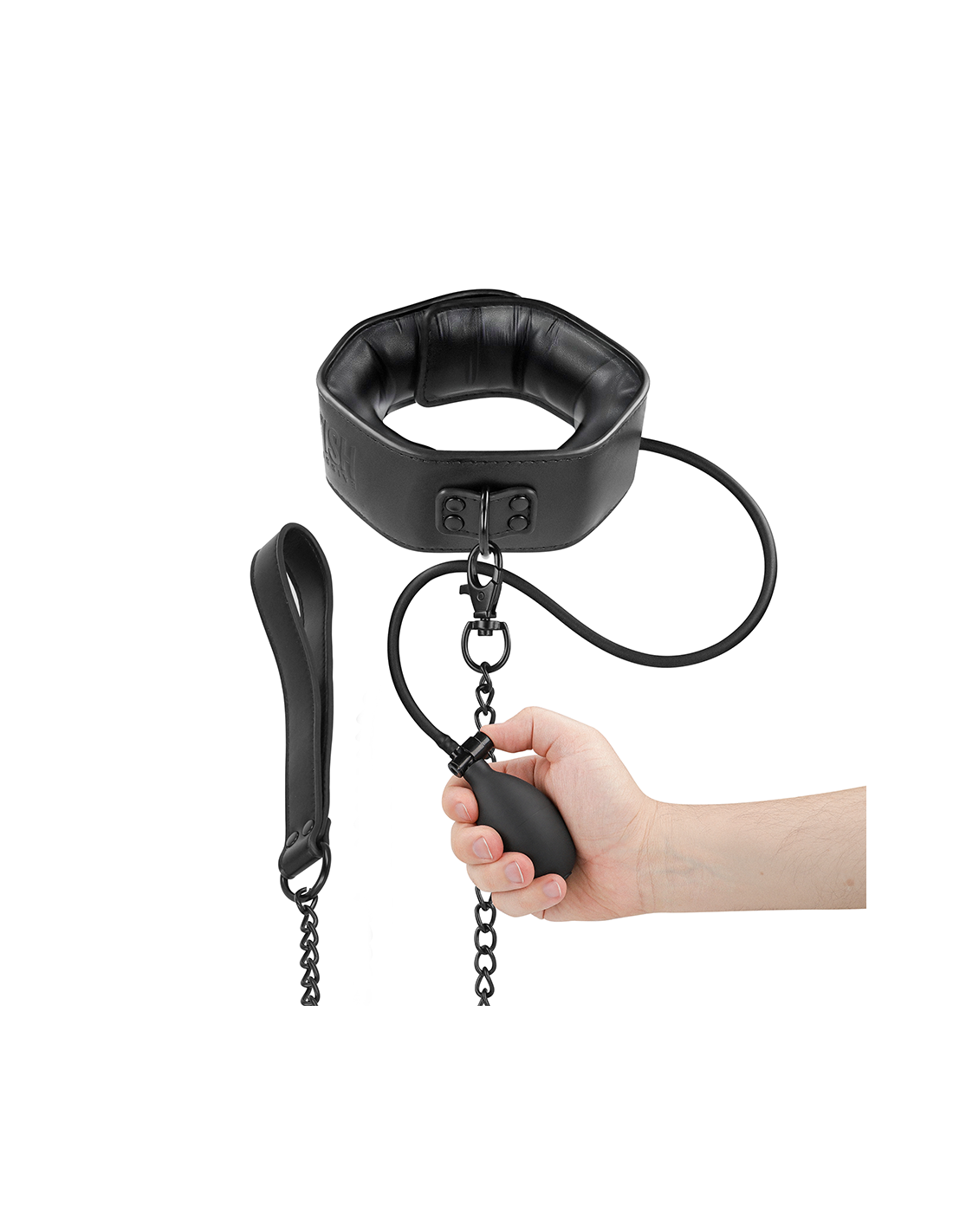 FETISH SUBMISSIVE BONDAGE - INFLATABLE STRANGLING COLLAR WITH CHAIN