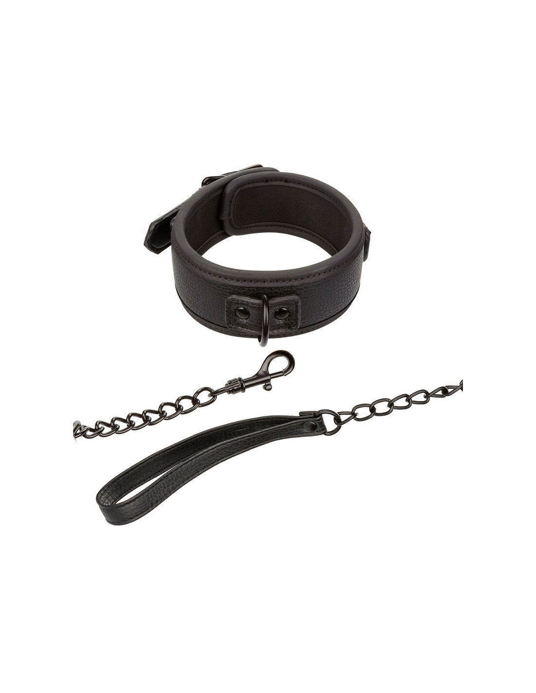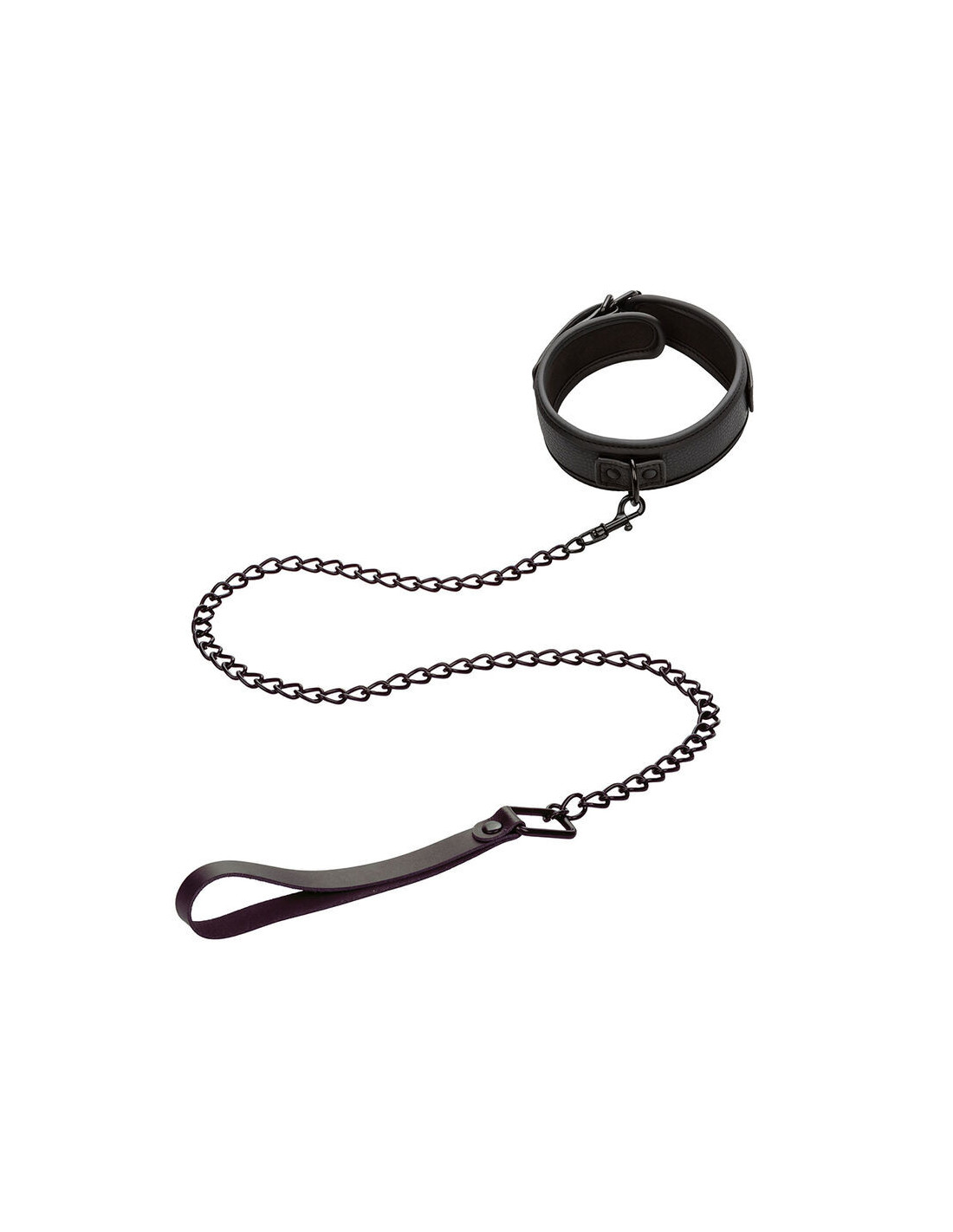 Crafted from a sturdy metal chain, it adds sensuality and dominance to play. Universal clasps and a swivel D-ring enhance movement for fluid interaction. Symbolizing trust, the set boasts a double-stitched design for strength.