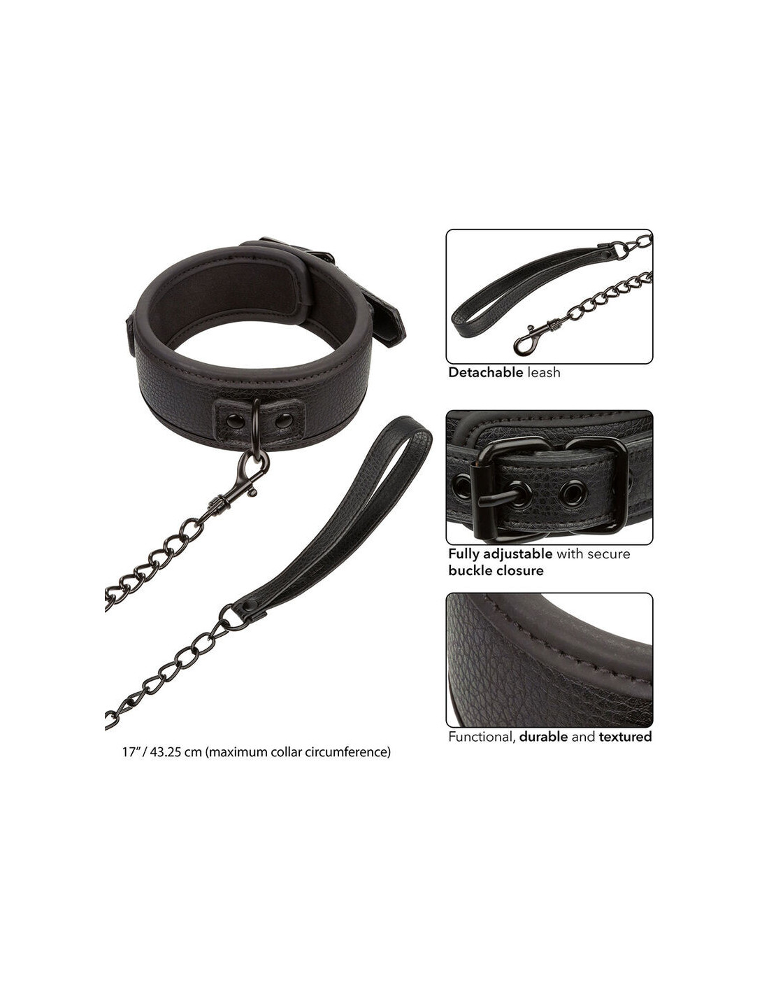 - Heavy duty collar with detachable leash