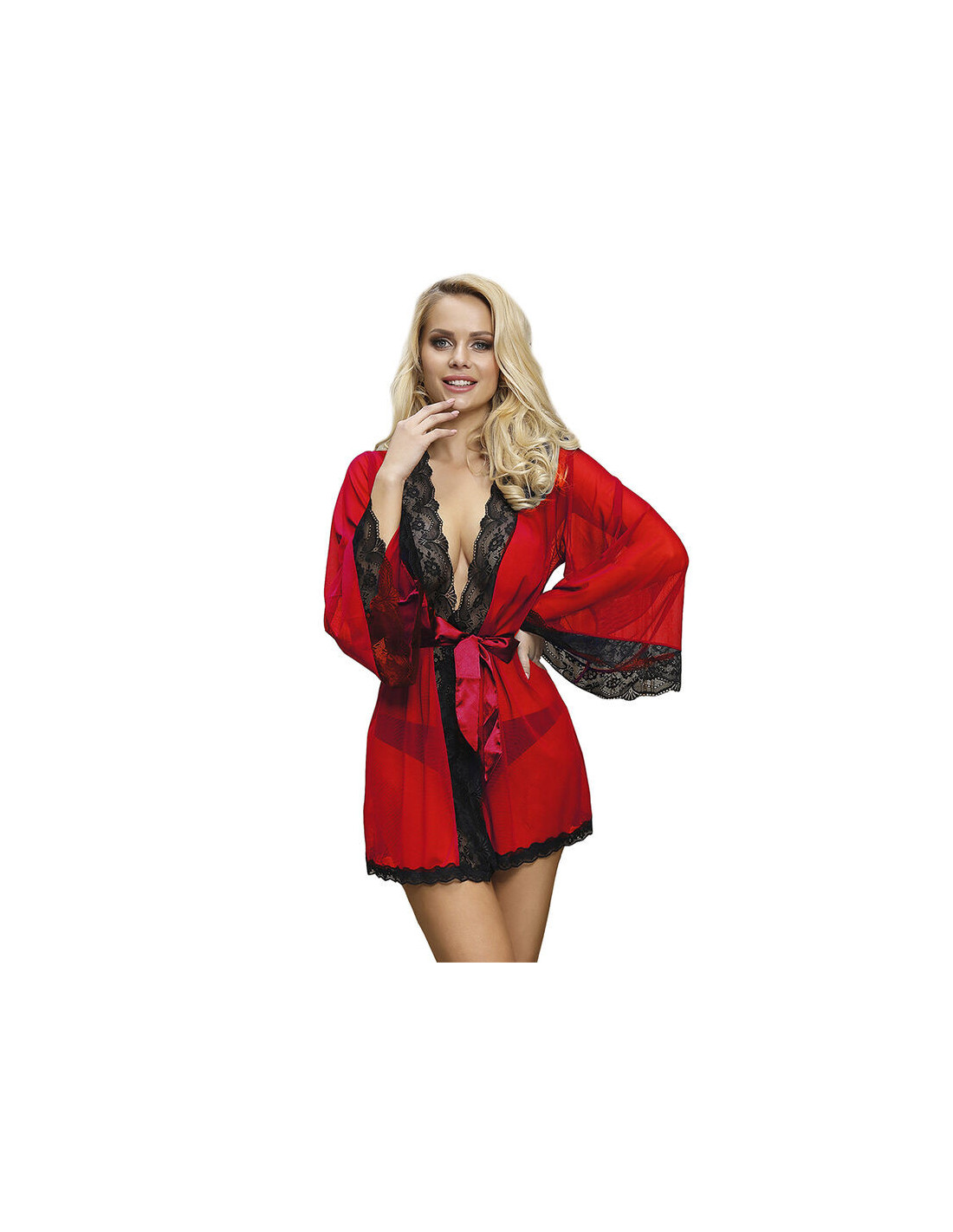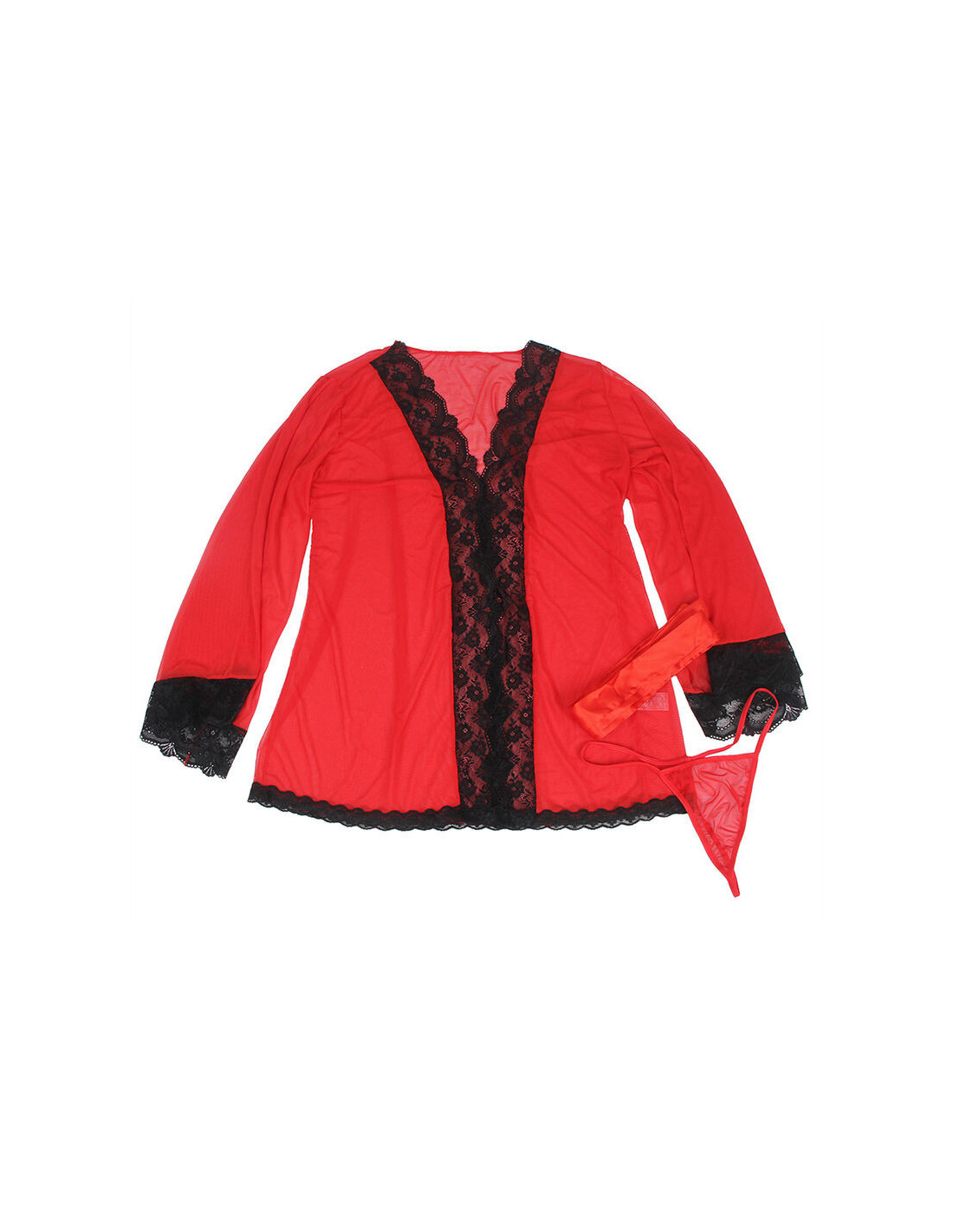 SUBBLIME - TRANSPARENT FABRIC ROBE WITH LACE DETAIL RED S-M