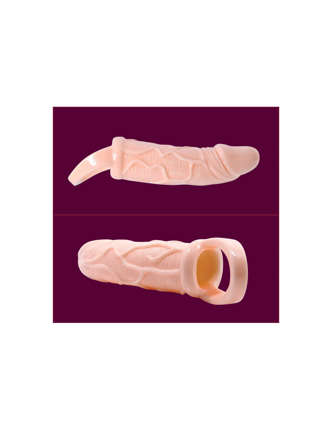 Penis extender sleeve with bullet incorporated into the tip and strap for the testicles to increase both thickness and length, and thus increase the pleasure of both during intercourse. It has a realistic and functional design since the reliefs of the contours serve as a stimulant for your partner and it is made of high quality TPR.