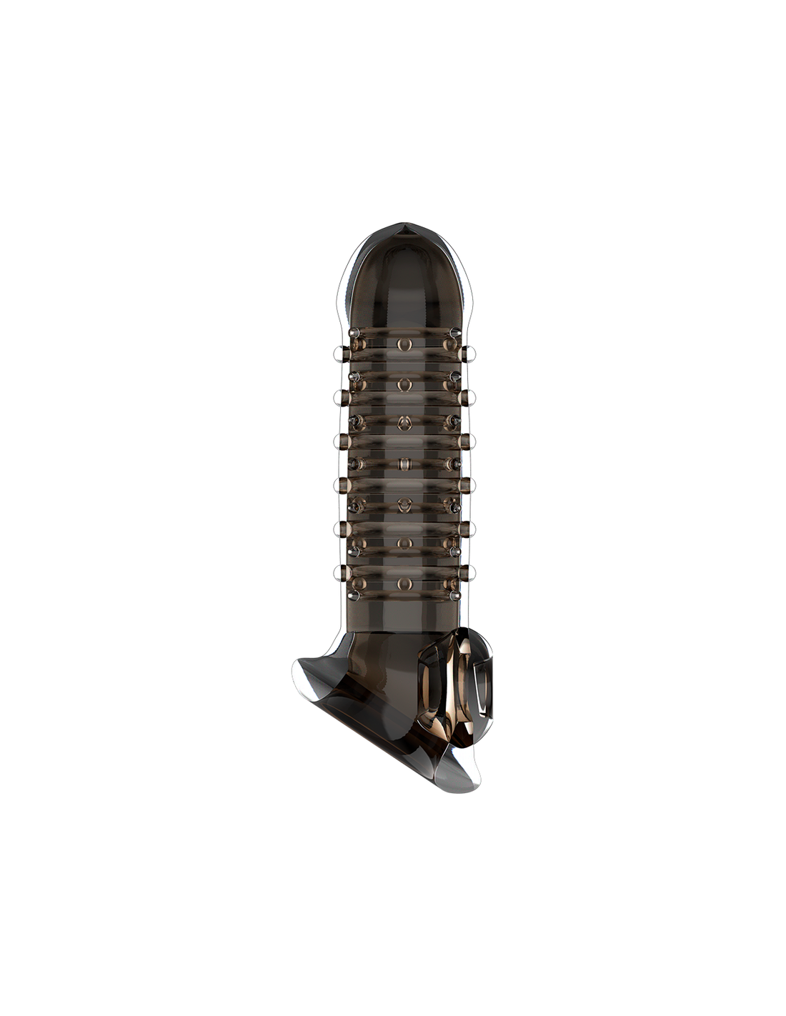Fulfill exciting fantasies when you slide your penis into the sheath and your scrotum into the strap. Once this extension sleeve is secured, you will have more length and girth to play with in full support.