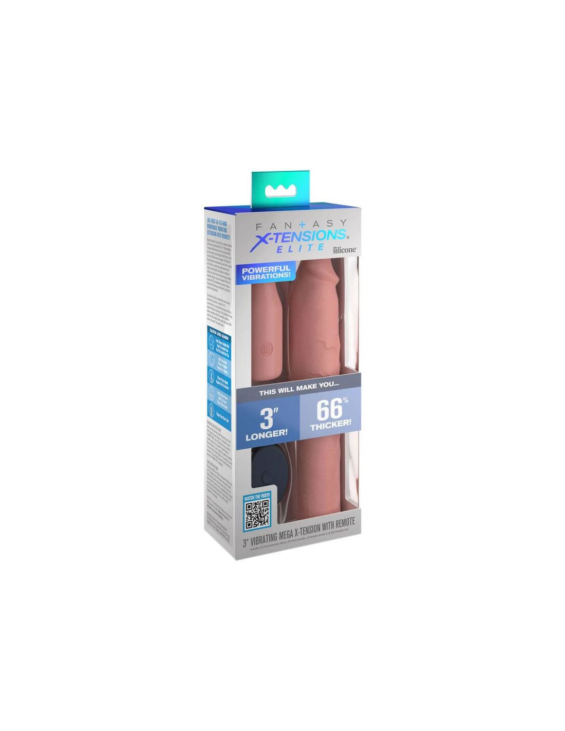 Instantly transform your penis into a pleasure machine with Fantasy X-tensions Elite! The 3inch Vibrating Mega X-tension with Remote is the first-of-its-kind where you can enhance your length/girth AND vibrate at the same time! Made from ultra-hygienic Elite Silicone, this performance-enhancement sleeve fits like a glove and feels like a second skin, giving wearers extra length, increased girth, and maximum confidence. Satisfy your partner and avoid embarrassing midway letdowns with your new secret weapon! Perfect for people with ED and performance anxiety, Fantasy X-tensions Elite enhancers will deliver results both partners will appreciate.