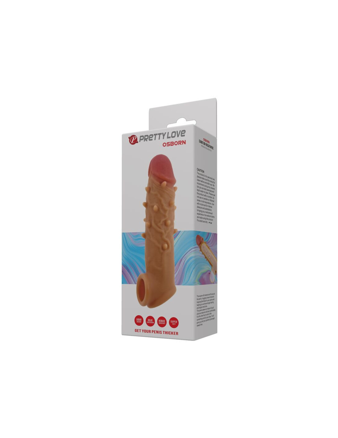 The case is made of skin-like liquid silicone for that ultra-realistic feel and is expertly sculpted to have a realistic look. This natural-feeling penis extension sleeve conforms to your erection with a comfortable, hollow shaft and testicle ring for a secure fit that won't move during play. The thick sleeve walls and raised knots offer them even more stimulation with each thrust.