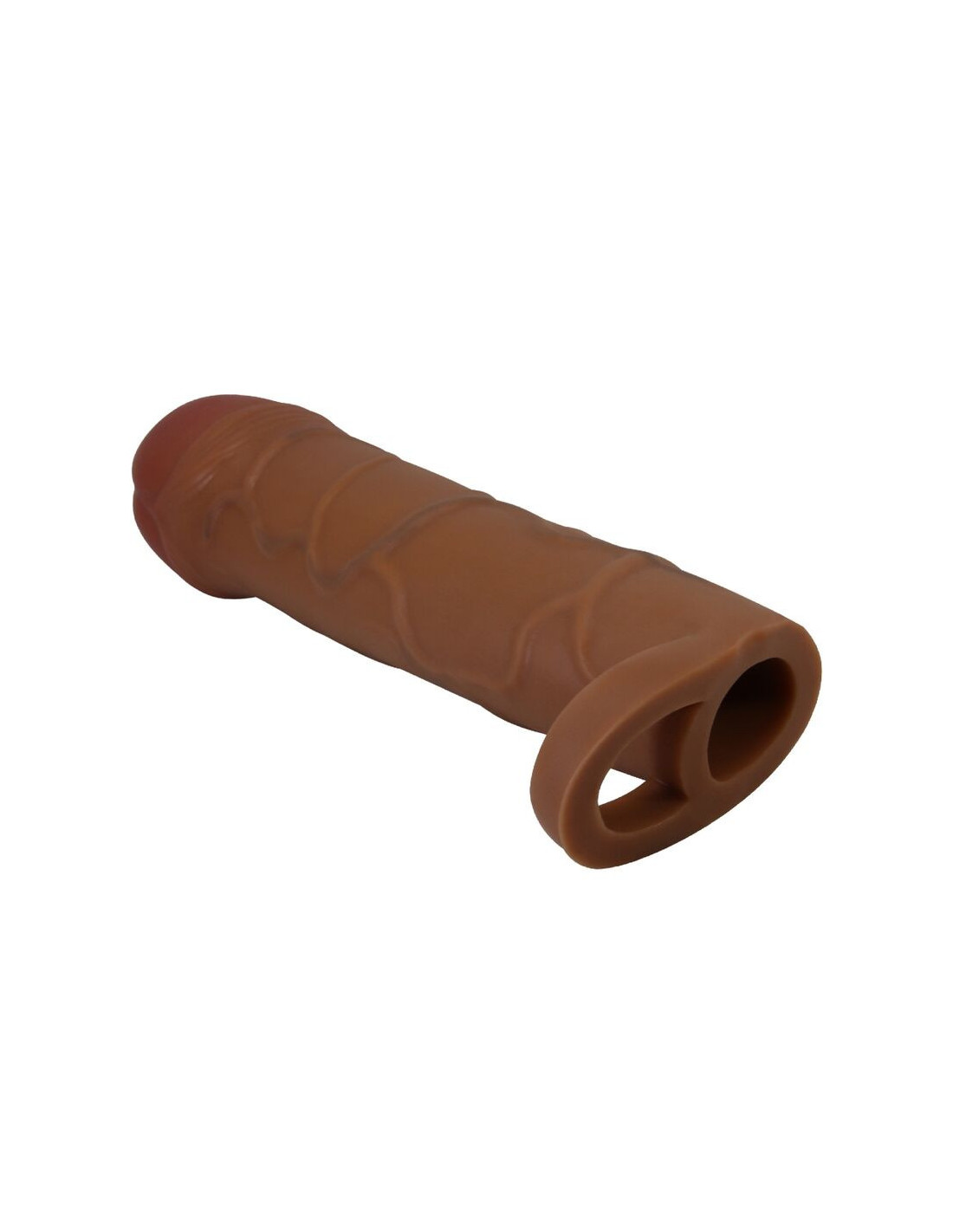 Go that extra inch to pleasure your partner when you pop on this erection-extending penis sleeve. Offering an extra inch in length, and a girth growth, its real-feel material and lifelike detailing create a realistically filling feeling. Designed to sit snugly on the wearer's penis, improve your hold and delay ejaculation, the smooth internal canal keeps play comfortable and pleasurable. Just don't forget to coat both the inside and outside of the toy with water-based lube before use.