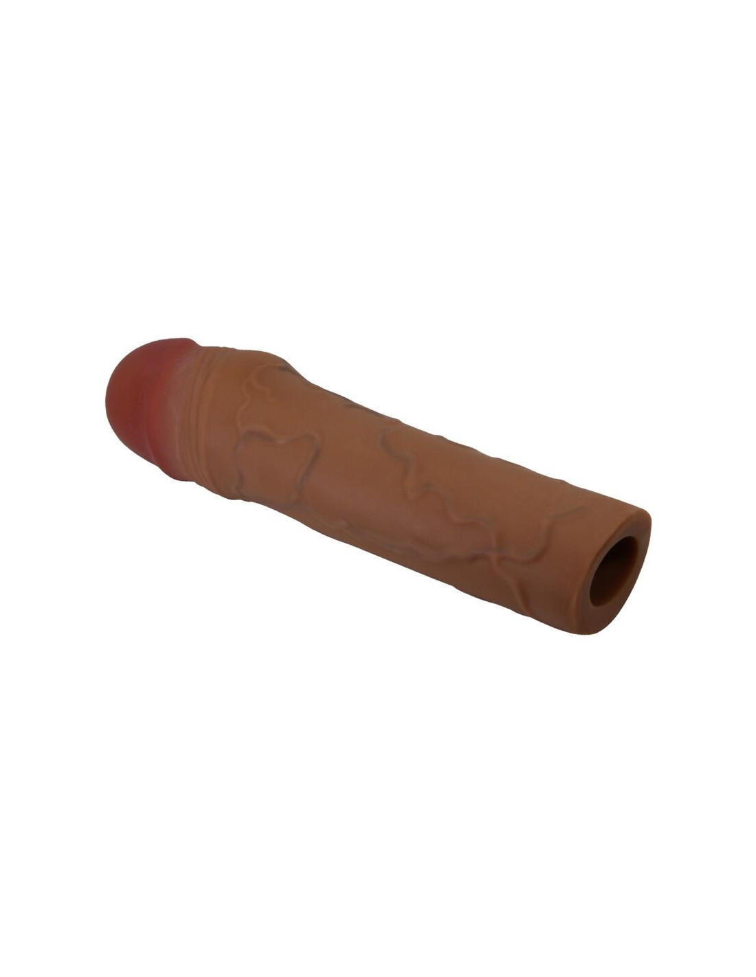 Increase the size of your penis with pleasure penis extender. Made of ultra realistic material for ultra lifelike pleasure, this sleeve gives you 2 extra inches of length, 35% girth. The external surface is textured with lifelike veins and features a bulbous head to ensure your lover experiences natural feeling sensations. A smooth internal canal hugs your erection for maximum contact and stimulation.