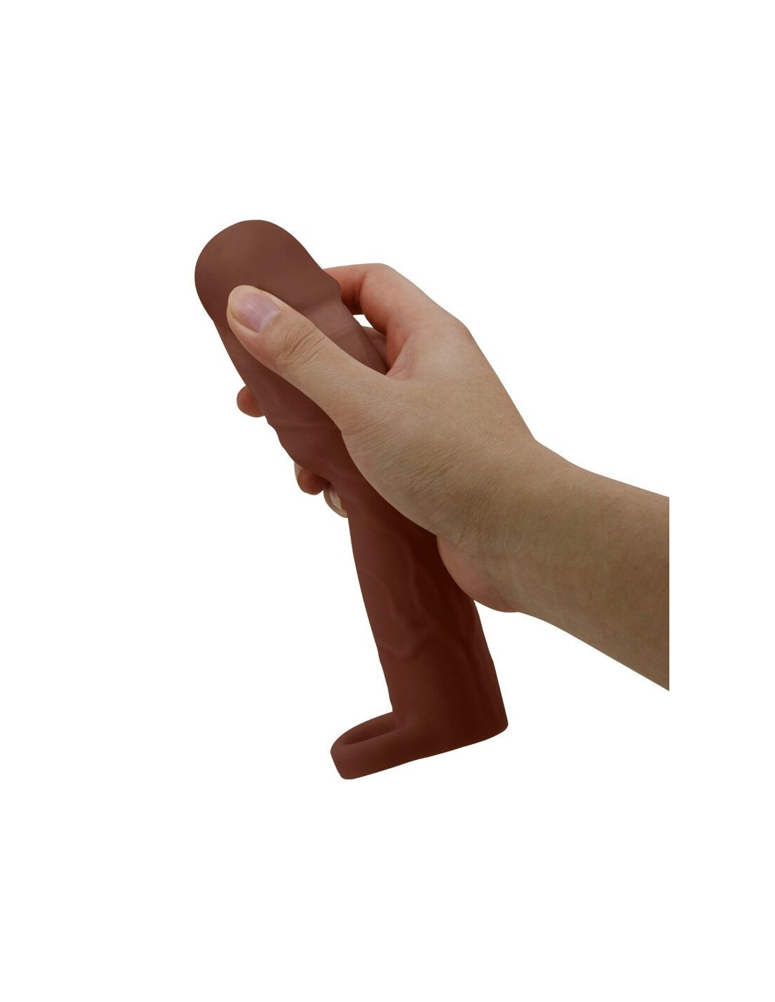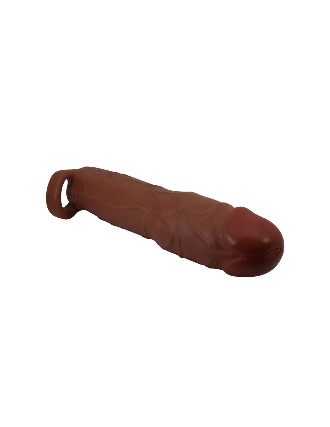 Increase the size of your penis with pleasure penis extender. Made of ultra realistic material for ultra lifelike pleasure, this sleeve gives you 3 extra inches of length, 35% girth. The external surface is textured with lifelike veins and features a bulbous head to ensure your lover experiences natural feeling sensations. A smooth internal canal hugs your erection for maximum contact and stimulation.