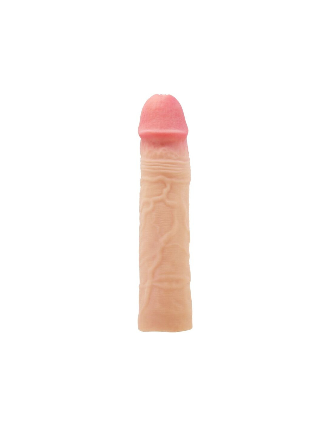 Increase the size of your penis with pleasure penis sleeve. Made of ultra realistic material for lifelike pleasure. The external surface is textured with lifelike veins and features a bulbous head to ensure your lover experiences natural feeling sensations. A smooth internal canal hugs your erection for maximum contact and stimulation.