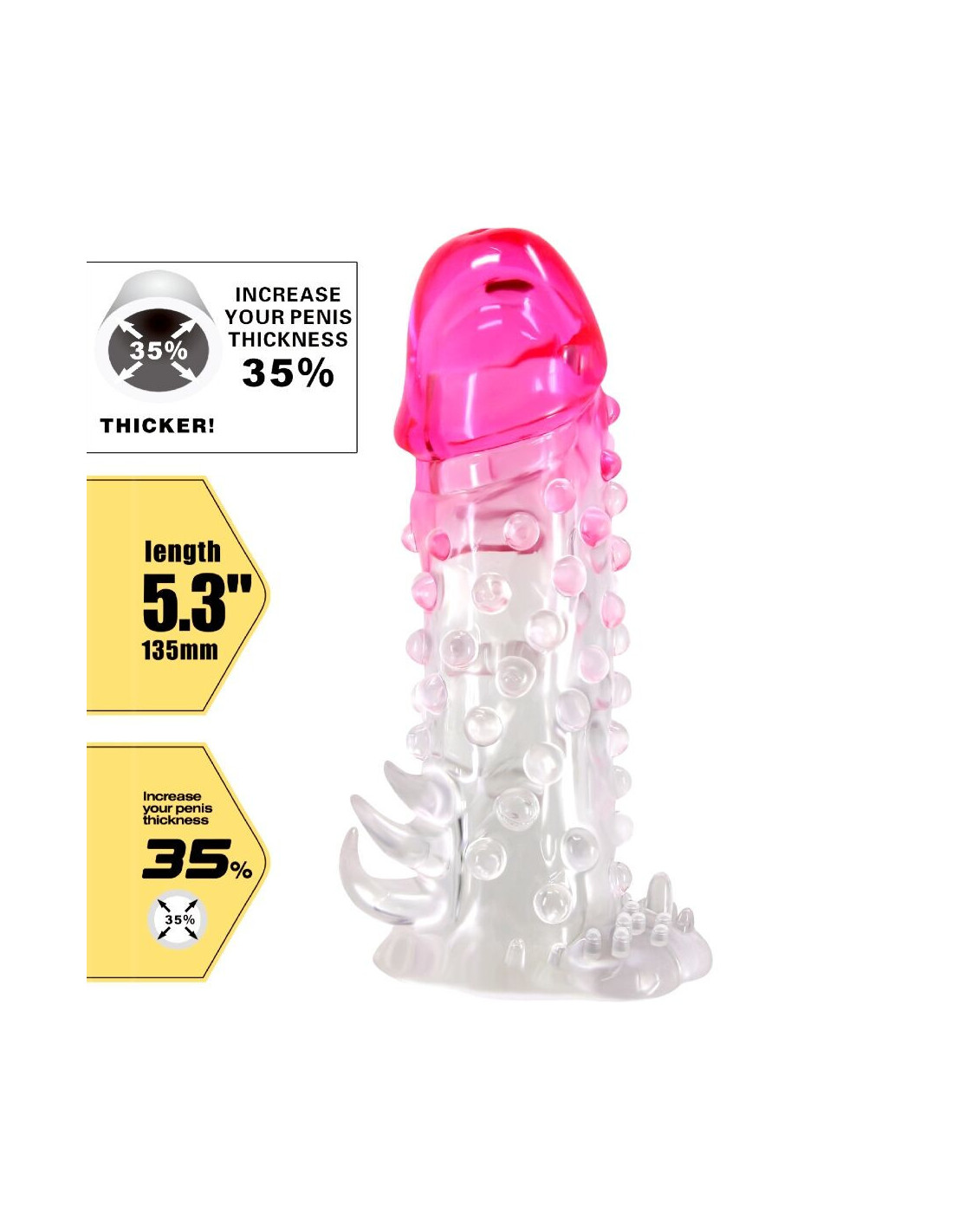 Not only that but the thin and flexible anal stimulator allows for three kinds of pleasure! This penis extension sleeve has a solid tip to give you that extra length when you want it.