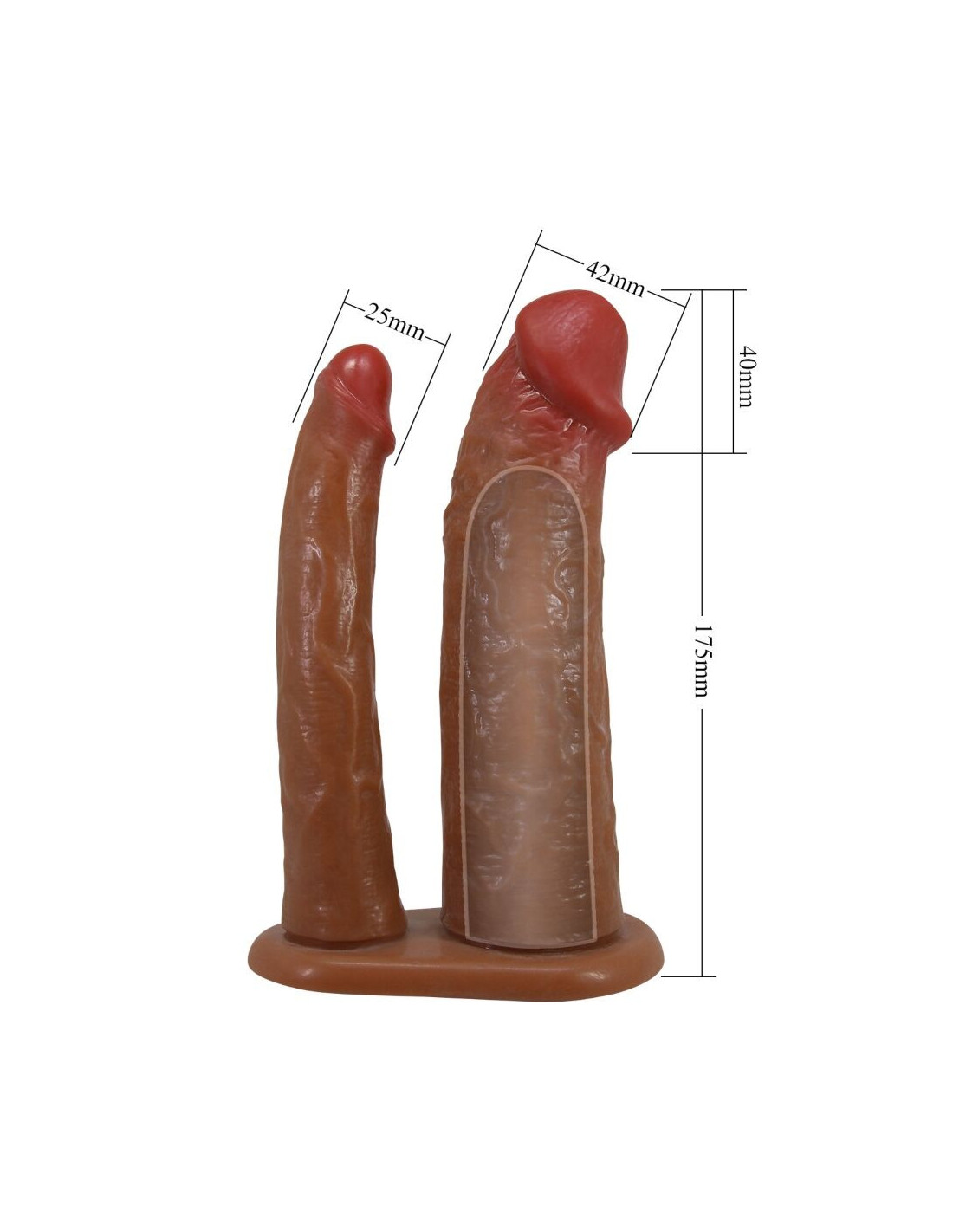 PRETTY LOVE - YAIRON DOUBLE PENIS SLEEVE WITH 4 CM EXTENSION MULATTO