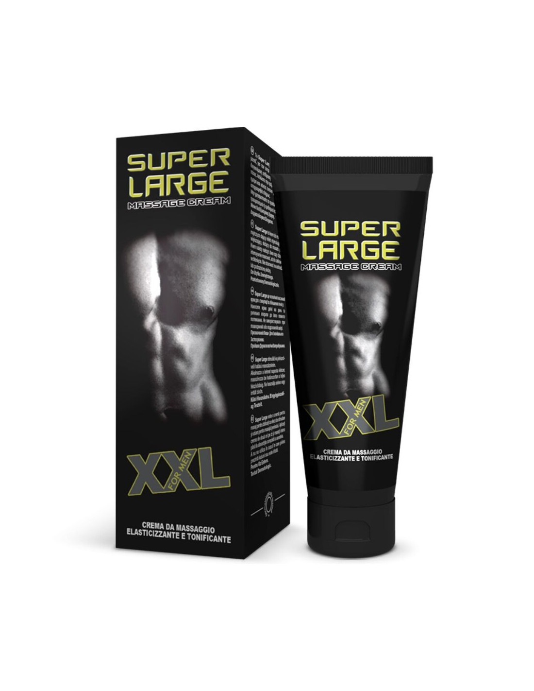 Super Large, thanks to its revolutionary formula, invigorates the penis and increases size and firmness after the first applications, giving more elasticity to the skin. This innovative cream, thanks to the help of massage, penetrates deeply, guaranteeing a powerful and long-lasting invigorating action.