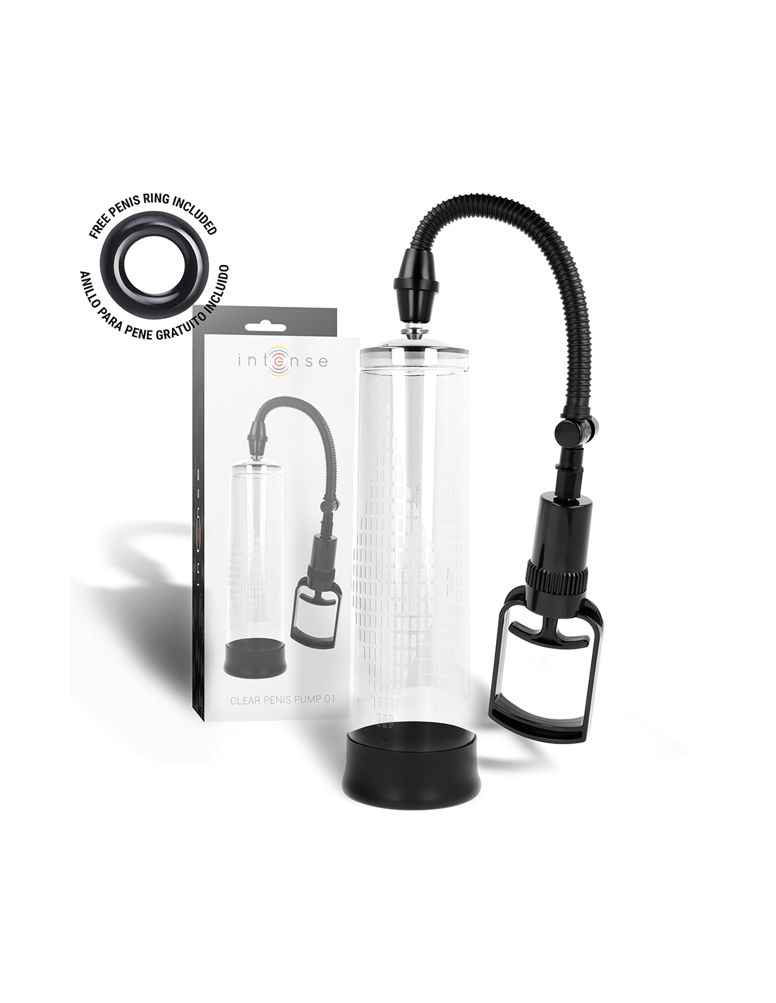 Intense Penis Pump helps achieve an erection more easily by using a vacuum system that concentrates blood in the penis when it is still flaccid. The erection is achieved and maintained by means of a comfortable and hermetic seal at the base of the body, just at the junction of the penis with the pubis, thanks to which the blood is kept in the trunk. Thanks to the sleeve, the seal is firm, comfortable and tight without squeezing.