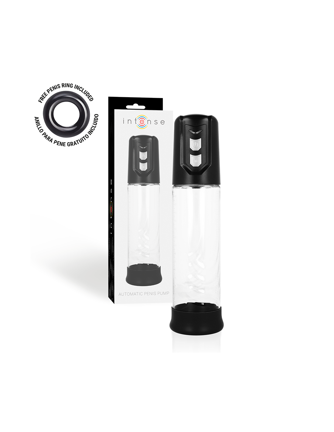 Intense Pump helps achieve an erection more easily using a vacuum system that causes blood to concentrate in the penis when it is still flaccid. The erection is achieved and maintained by means of a comfortable and hermetic seal at the base of the body, just at the junction of the penis with the pubis, thanks to which the blood is kept in the trunk. Thanks to the sleeve, the seal is firm, comfortable and tight without squeezing.