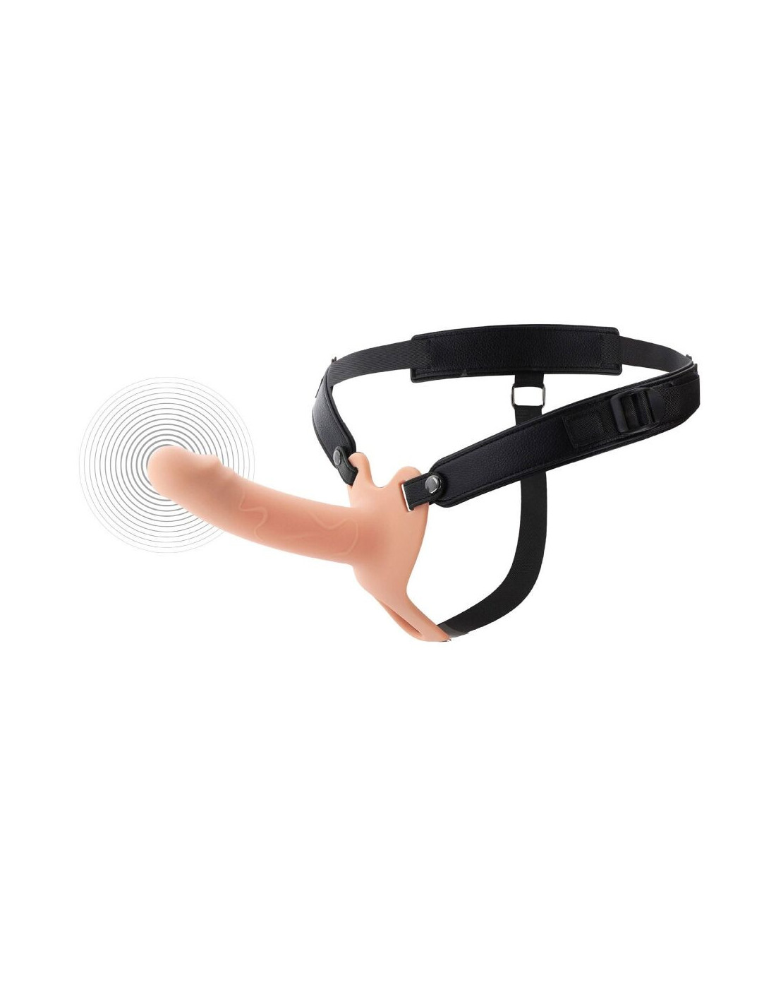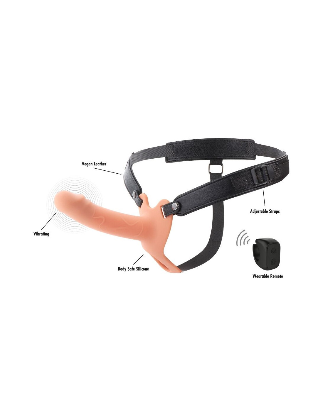 The penis sleeve stands out for its hyper-realistic design that not only increases length but also adds a very satisfying extra thickness. The main highlight is its vibration system with 10 different modes, controllable via a practical wireless remote that can be worn as a ring. Its internal structure allows it to house the penis, providing firmness and stability, while the adjustable nylon and vegan leather harness ensures a secure and comfortable fit for any silhouette, maintaining total control in every movement.