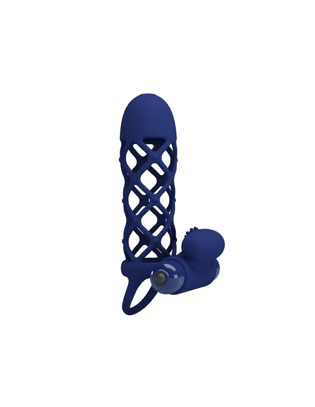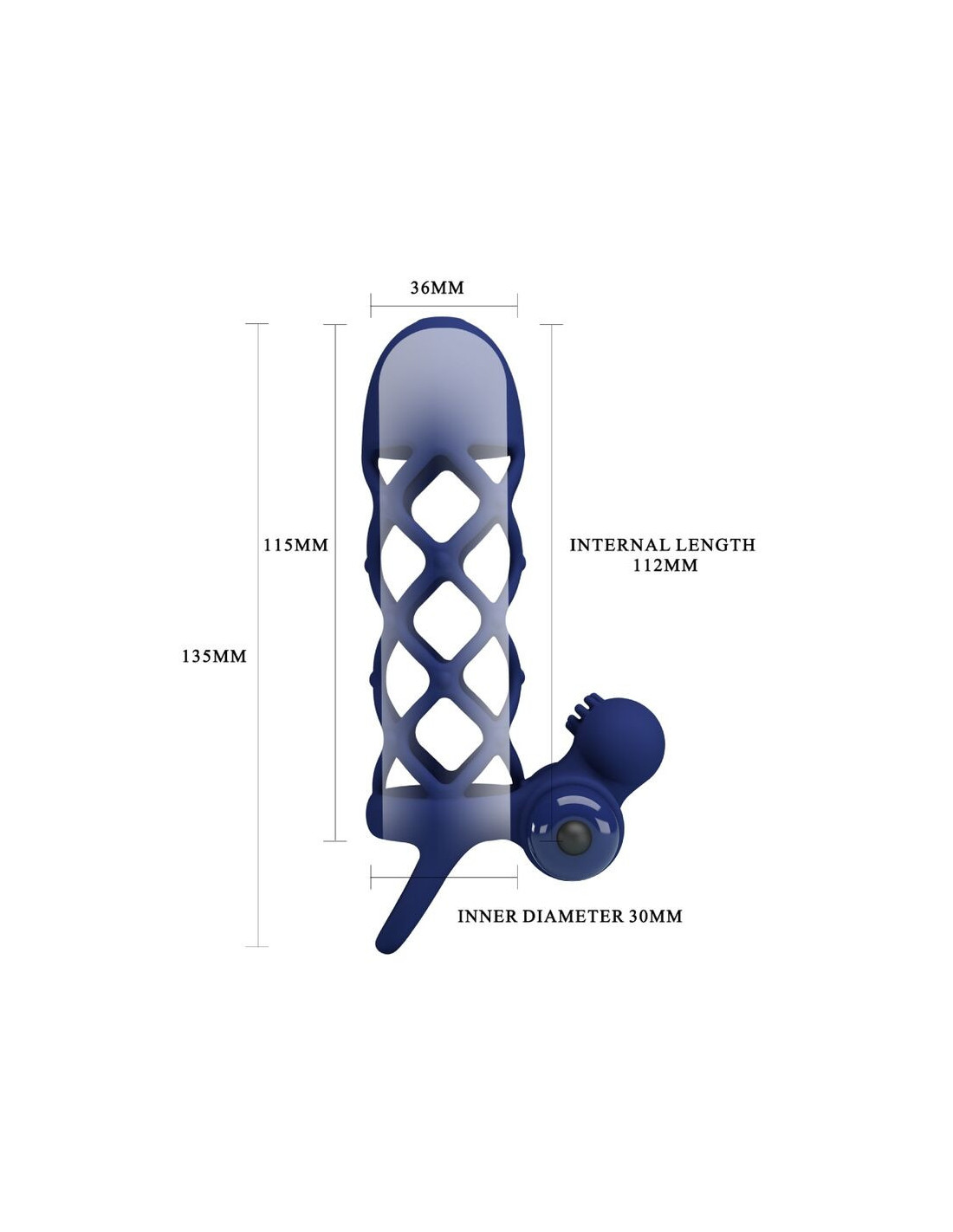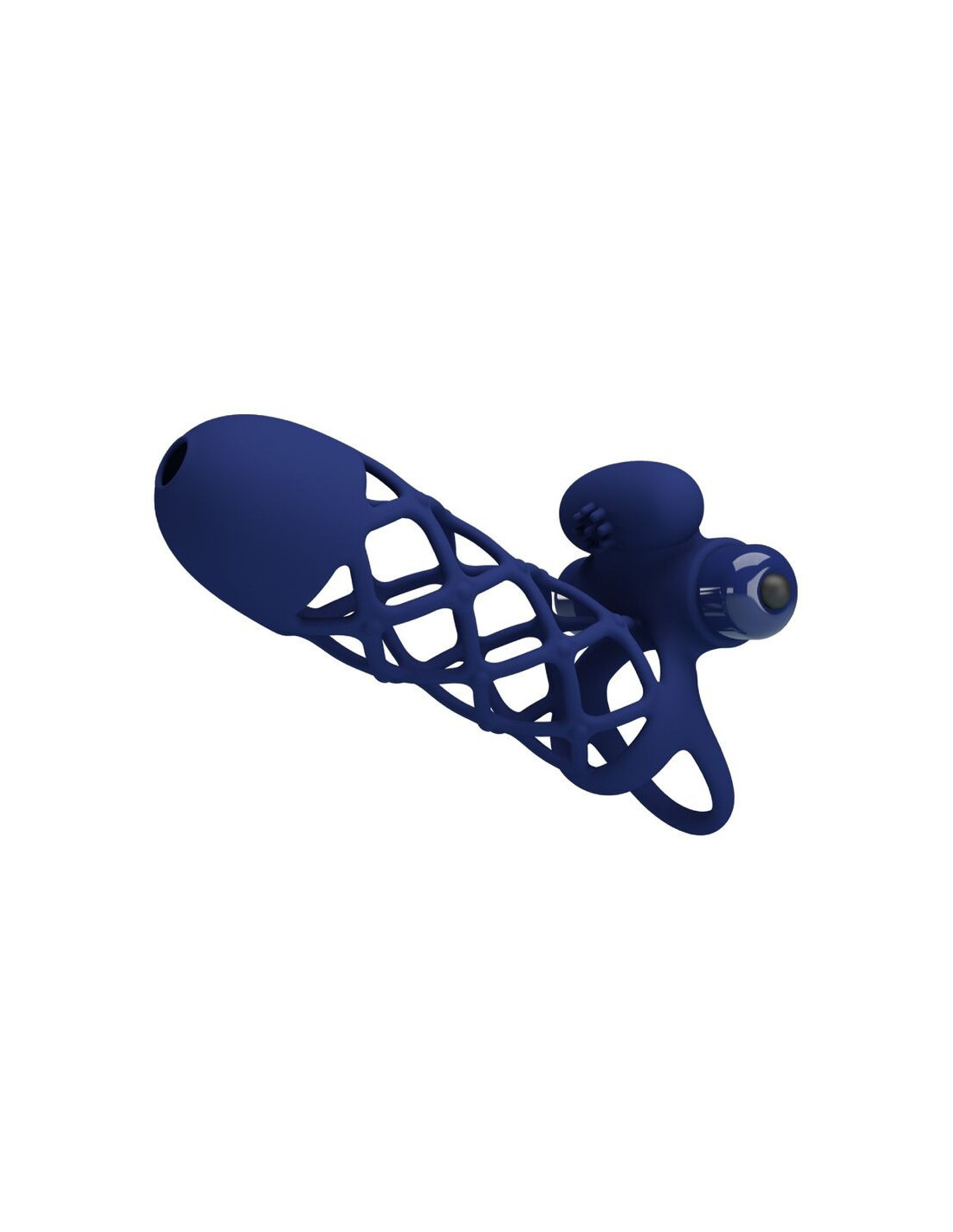Offering a firm grip around your prized possession, be strong and stable with the 10 Function Vibrating Penis Sleeve. Let the caged sleeve hug your penis for a stronger erection and greater impact, while the ball loop ensures the entire package is secure. content. For her pleasure as much as yours, the protruding clitoris stimulator is designed for her. Ready to spring into action as you aim for your clitoris during sex. Made of velvety black silicone. Turn on the vibrations and explore 10 modes of speeds and patterns as you discover which one will get you there. both to a powerful climax.