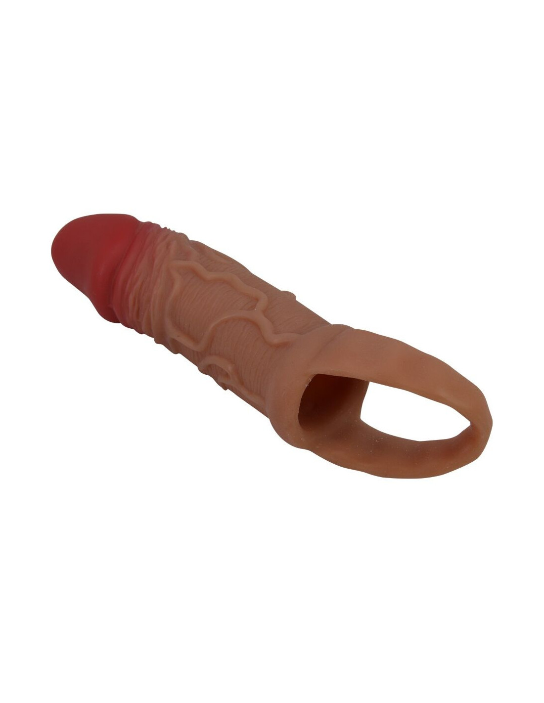 This stretchy sheath adds length, girth, and texture and will fit most cock-sizes.