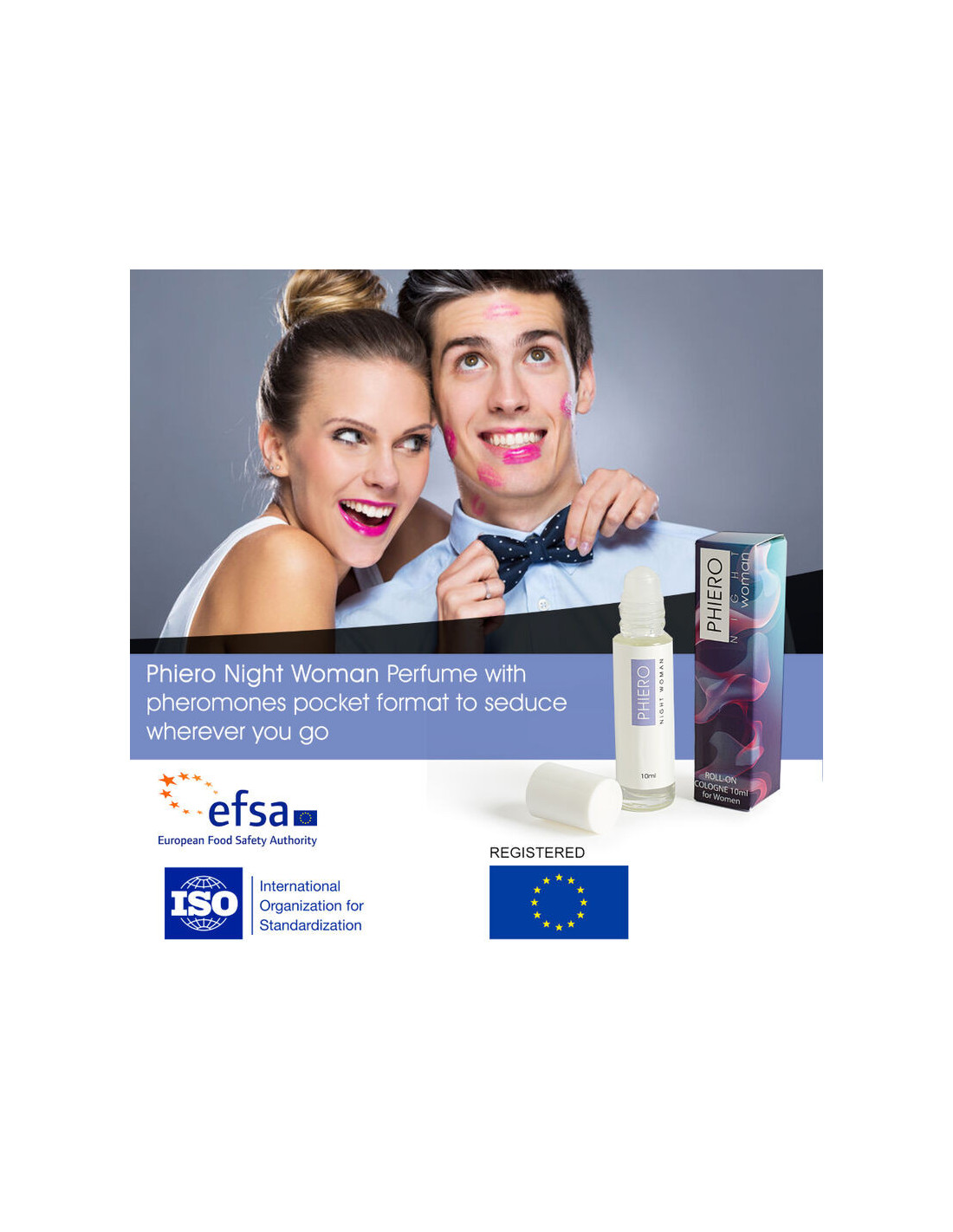 Phiero Night Woman is one of the female perfume from Phiero range with 3 pheromones to arouse attraction of the opposite sex. The new roll-on format allows to take anywhere and use on any occasion .