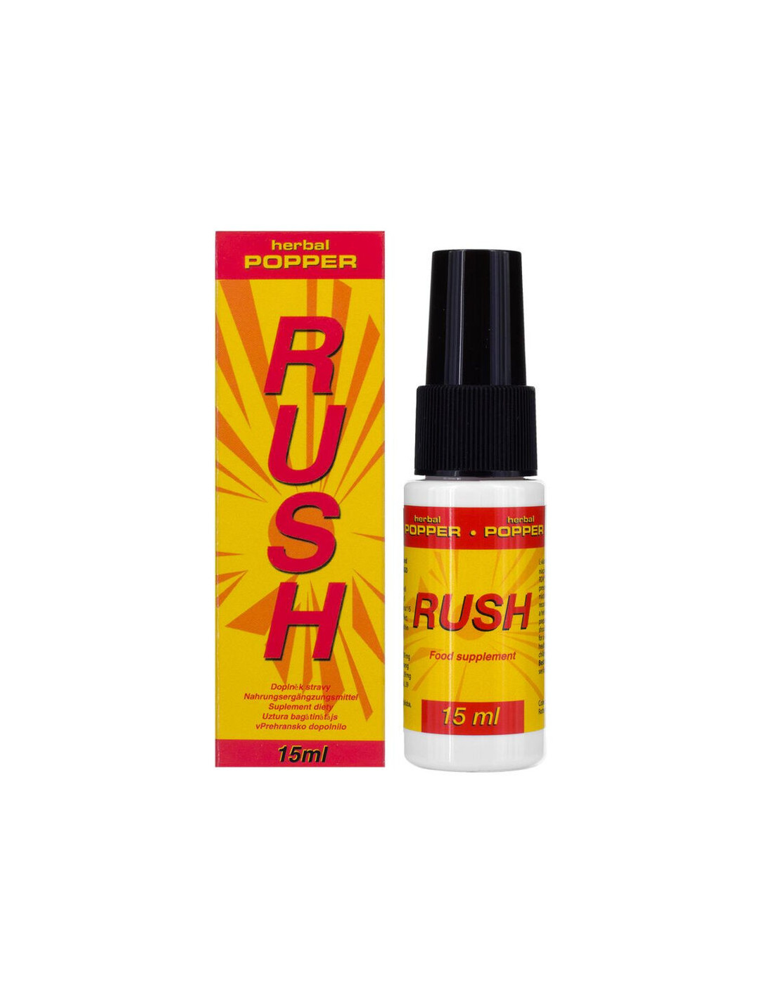 Rush Herbal Popper is a natural energetic that provides more intense sexual relations. These energy drops activate physical energy and thus also provide more sexual power, thanks to ingredients such as Siberian ginseng and ginkgo biloba. Experience how the sexual power of Rush Herbal Popper gives you an erotic high, for more intense and unforgettable pleasure.