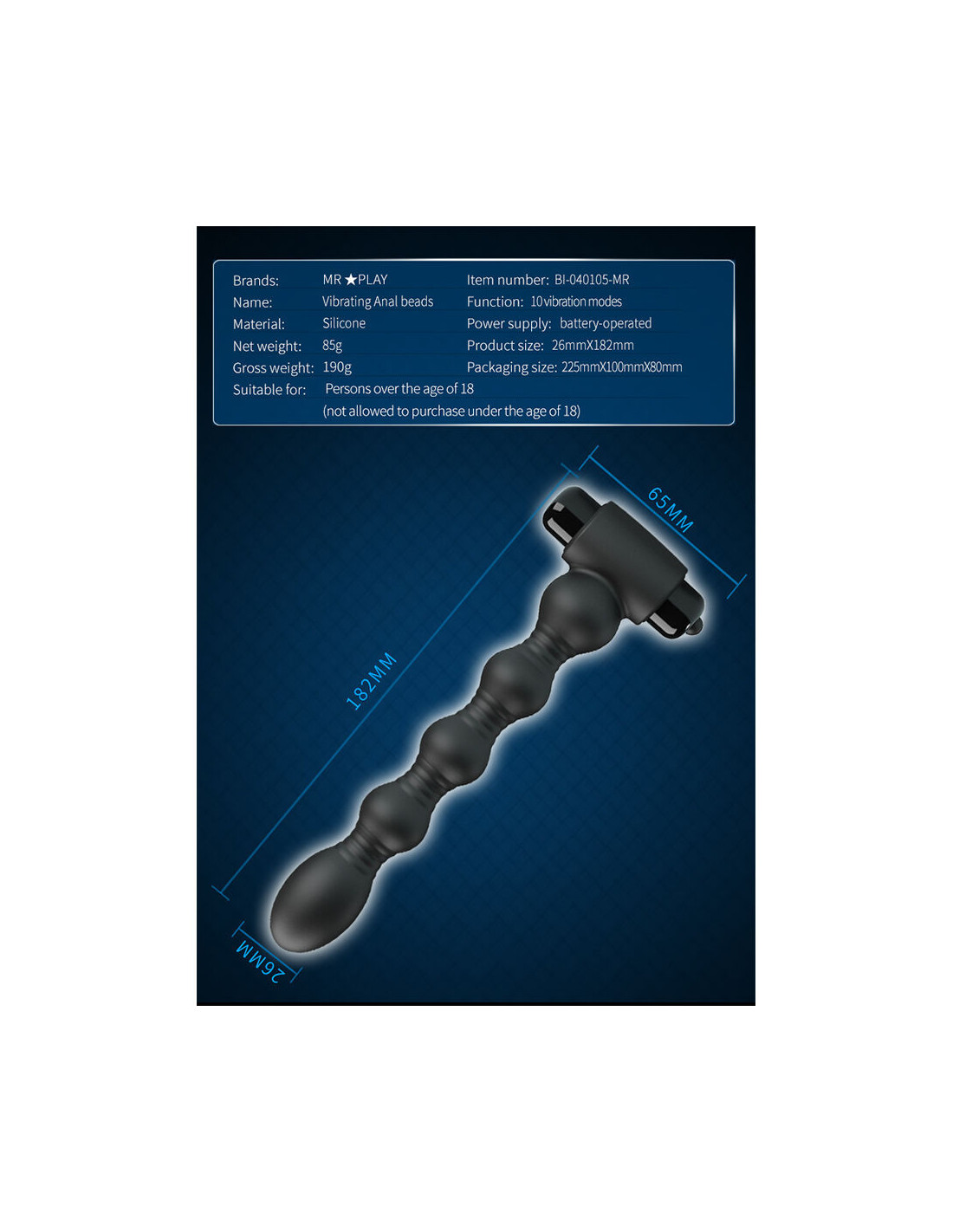 This beaded anal vibrator is made of a soft material that is safe for the skin. The unique graduated bead shape of this massager is designed to slide comfortably inside the anus to stimulate the inner walls with every insertion, while the T-base ensures a comfortable and safe stop.