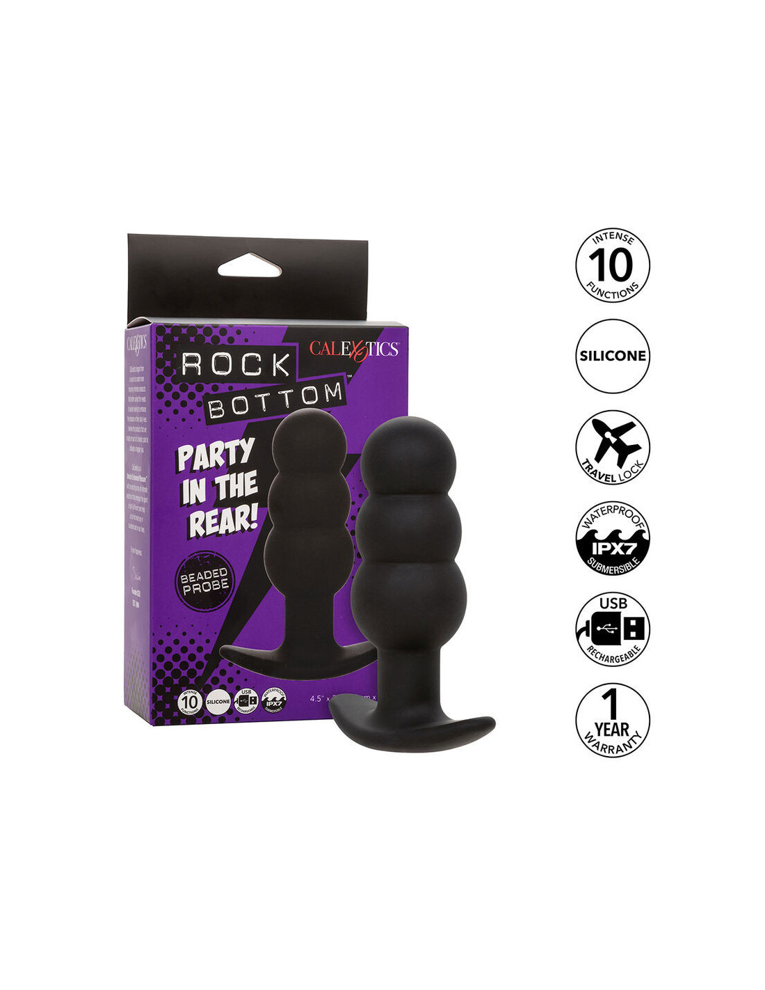 CALEXOTICS - ROCK BOTTOM BEADED ANAL PLUG 10 VIBRATIONS SILICONE BLACK