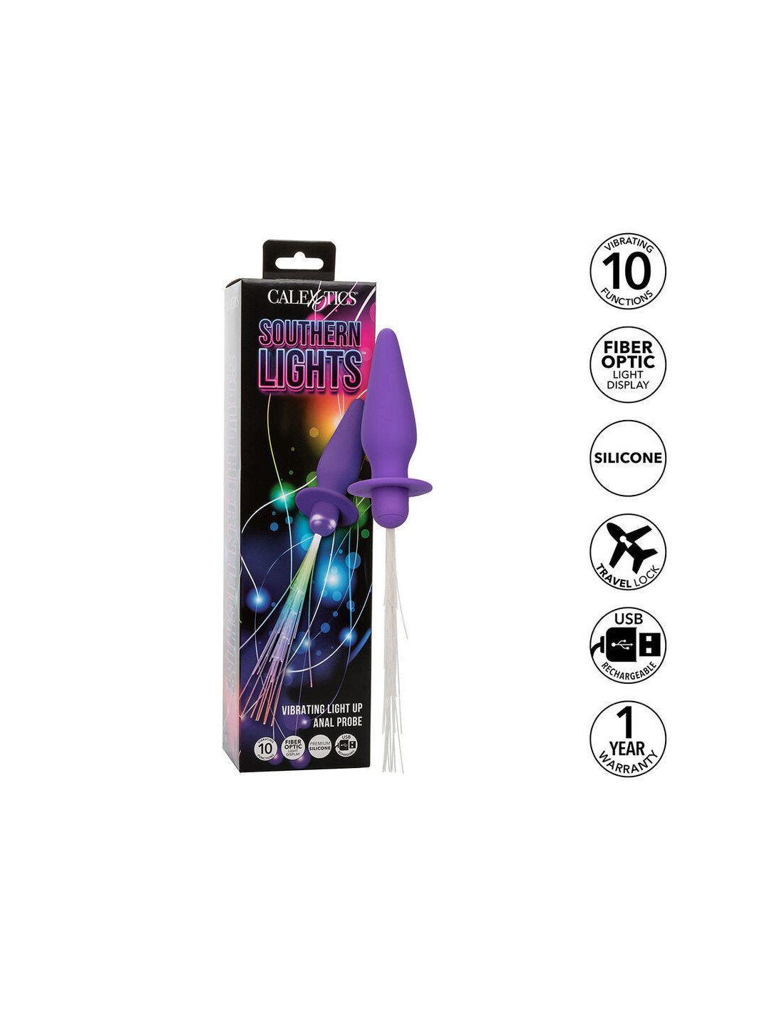 CALEXOTICS - SOUTHERN LIGHTS LIGHT UP ANAL PLUG 10 VIBRATIONS SILICONE PURPLE