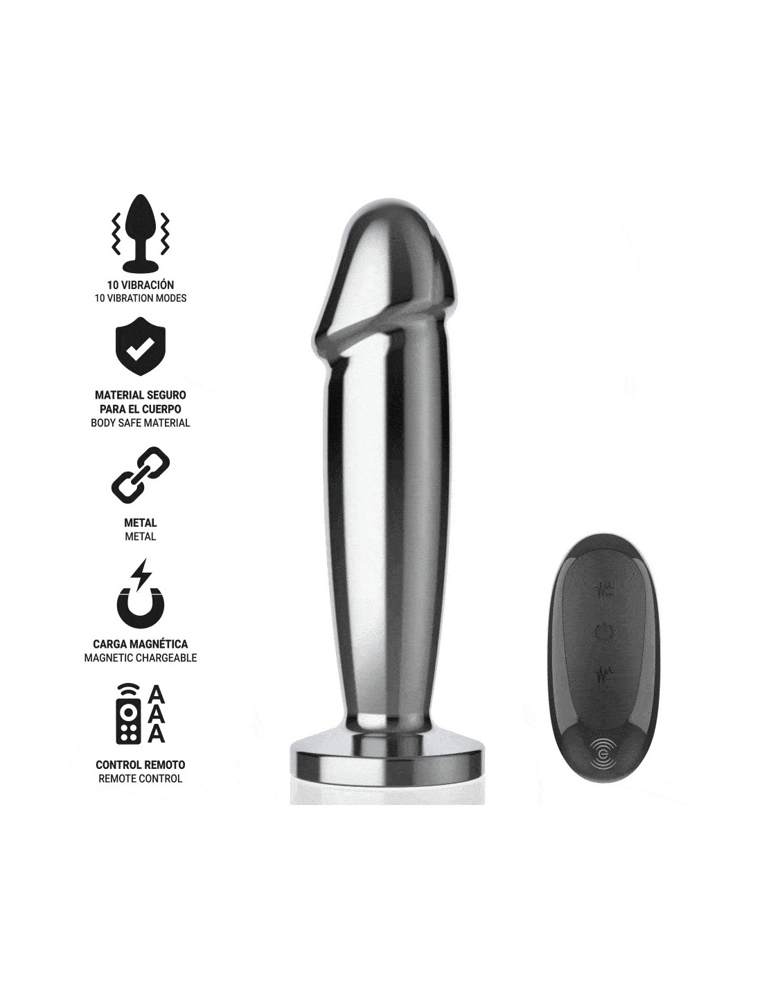 INTENSE - ANAL PLUG 10 VIBRATIONS METAL DILDO WITH REMOTE CONTROL S