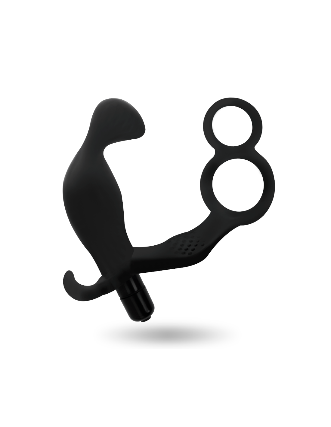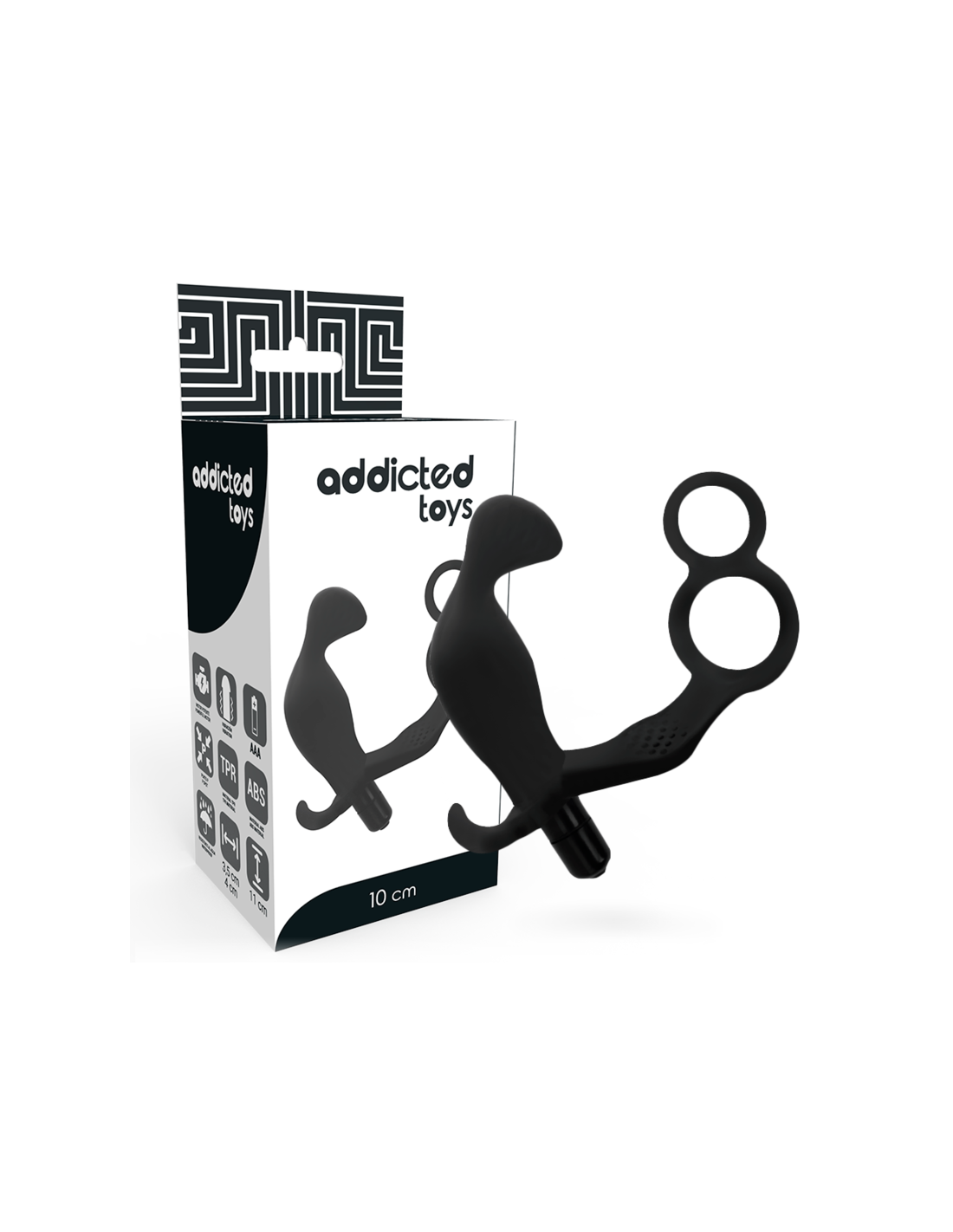 ADDICTED TOYS - ANAL PLUG WITH DOUBLE PENIS RING AND TESTICLES BLACK