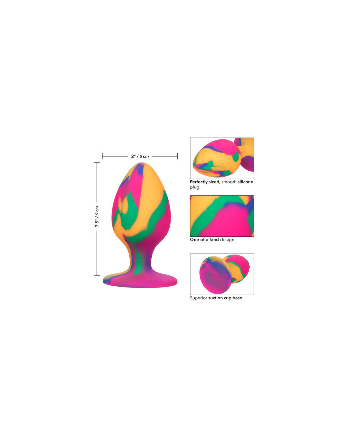 The fun suction cup base lets you get extra cheeky by mounting it on a flat surface for hands-free stimulation. The flexible plug is made from a body-safe silicone with a tie-dye design. These body-safe materials are fragrance-free and phthalate-free to keep your most sensitive spots happy and healthy.