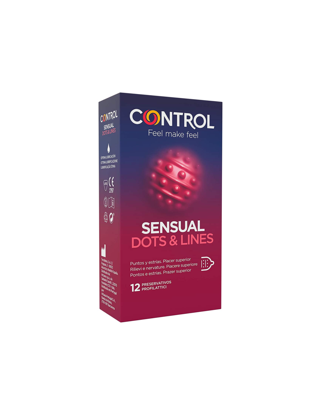 Control Sensual Dots&lines is a condom that offers greater stimulation thanks to the presence of delicate dots and grooves strategically placed on its surface. It also allows perfect adaptability (ADAPTA Technology), making your sexual relationship more satisfying.